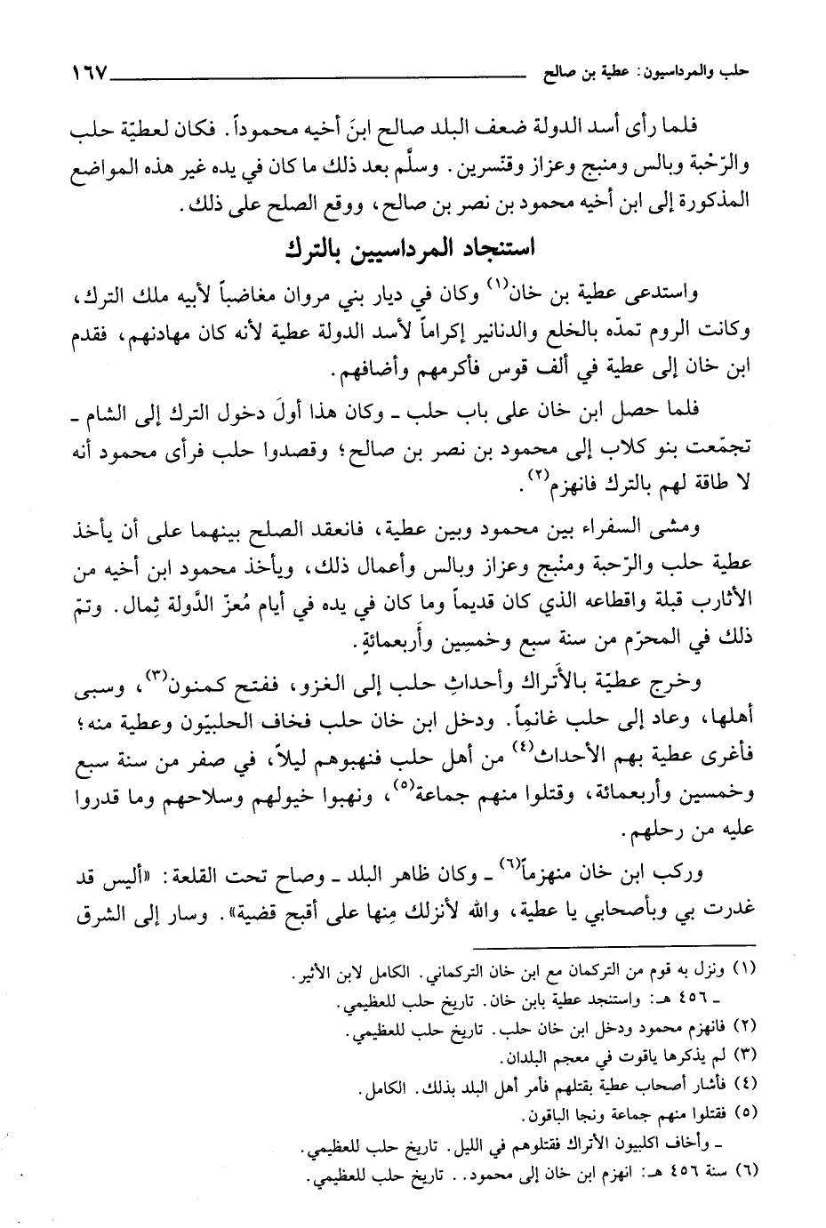فلما حصل ابن خان على باب حلب وكان هذا أول دخول الترك إلى الشام اتجمعت بنو كلاب إلى محمود بن نصر بن صالح، وقصدوا حلب فرأى محمود أنه لا طاقة لهم بالترك فانهزم.