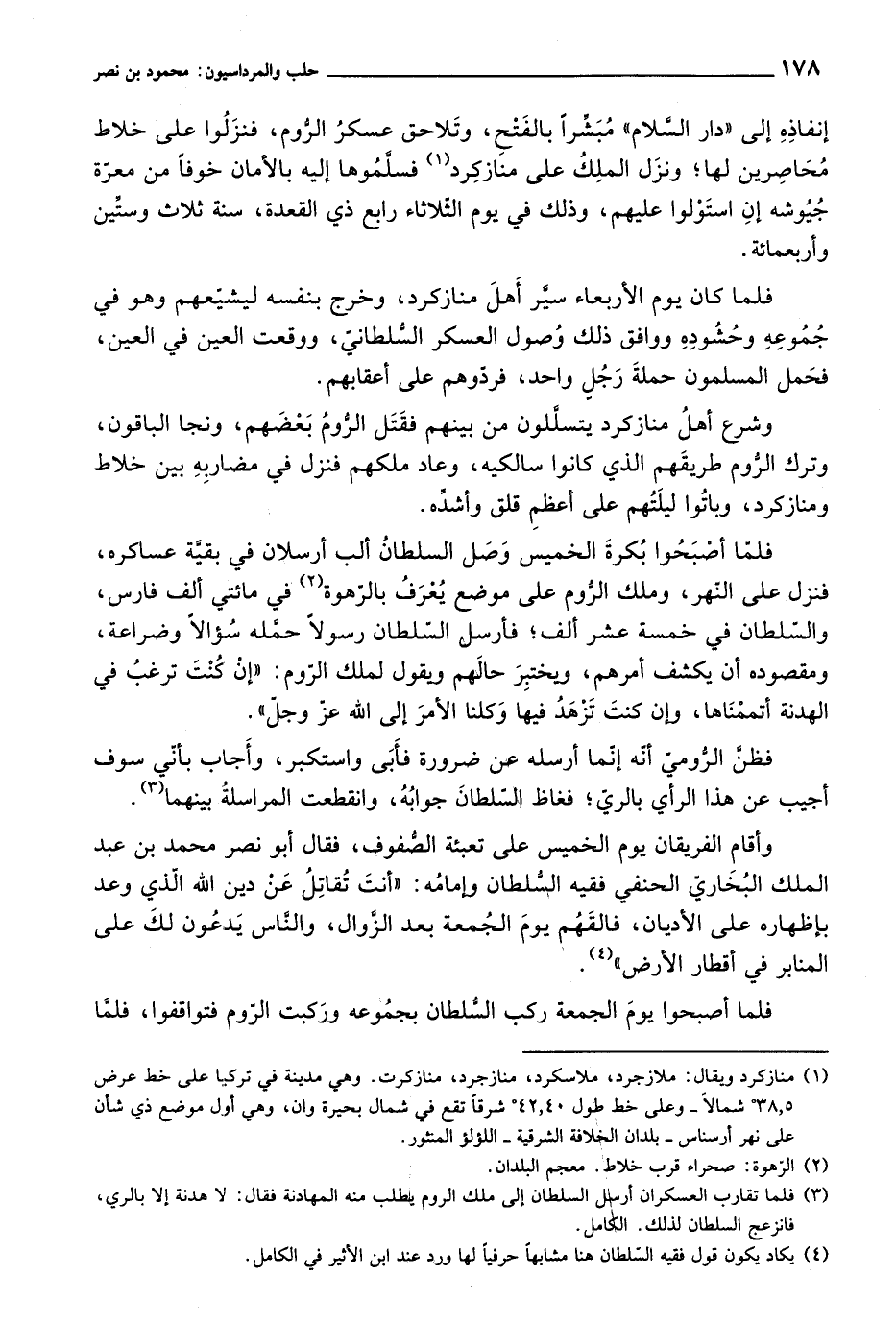 وشرع أهل منازكرد يتسللون من بينهم فقتل الروم بعضهم، ونجا الباقون، وترك الروم طريقهم الذي كانوا سالكيه، وعاد ملكهم فنزل في مضاربه بين خلاط ومنازكرد، وباتوا ليلتهم على أعظم قلق وأشده.