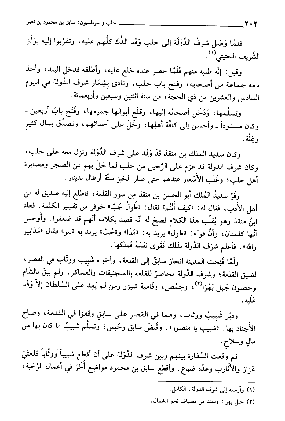 ولما فتحت المدينة انحاز سابق إلى القلعة، وأخواه شبيب ووثاب في القصر، لضيق القلعة، وشرف الدولة محاصر للقلعة بالمنجنيقات والعساكر ولم يبق بالشام وحصون جبل بهرا، وحمص، وفامية شيزر ومن لم يفد على السلطان إلا وفد عليه.