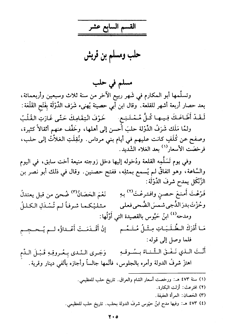 وتسلمها أبو المكارم في شهر ربيع الآخر من سنة ثلاث وسبعين وأربعمائة، بعد حصار أربعة أشهر للقلعة وقال ابن أبي حصينة يهنىء شرف الدولة بفتح القلعة: