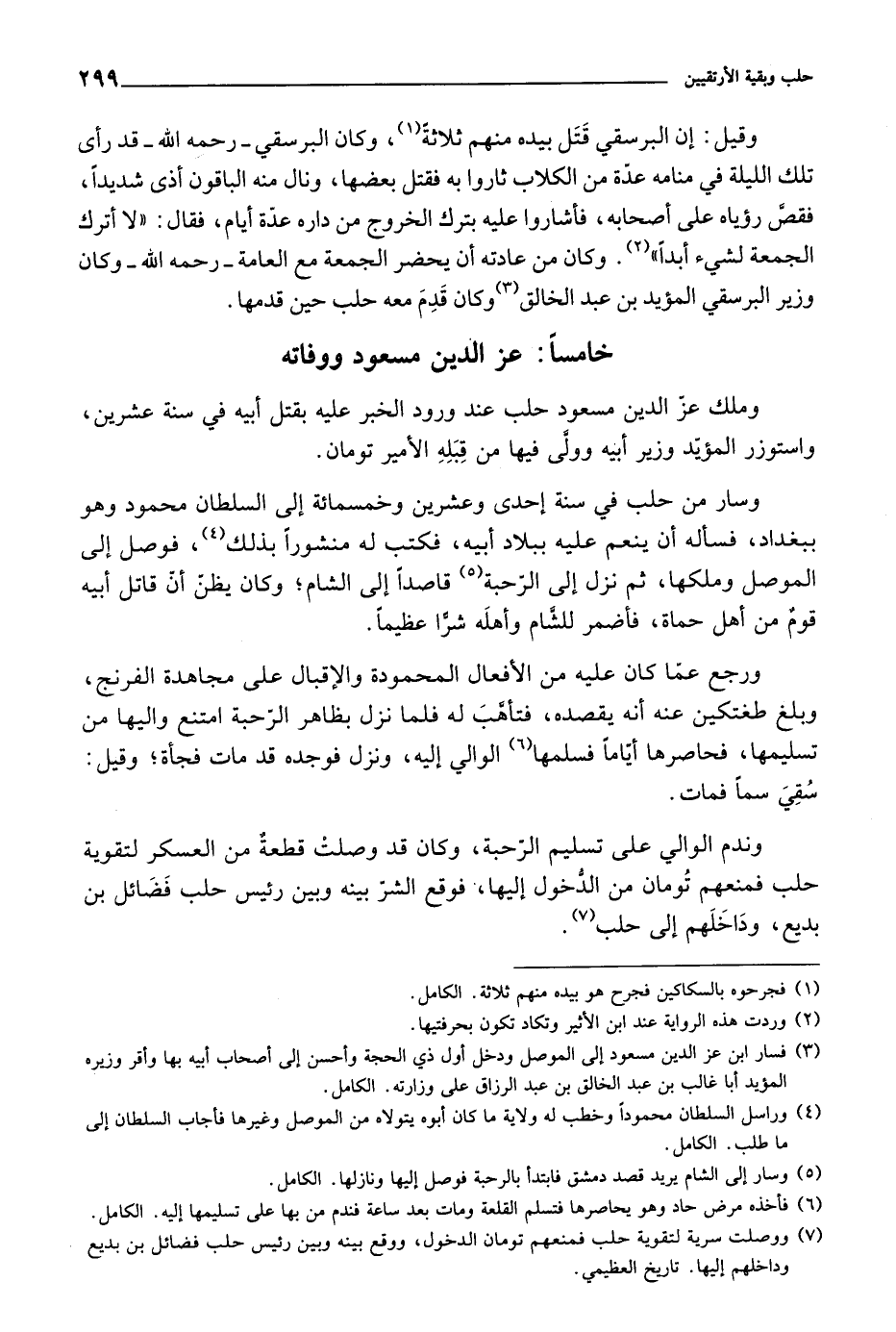 وملك عز الدين مسعود حلب عند ورود الخبر عليه بقتل أبيه في سنة