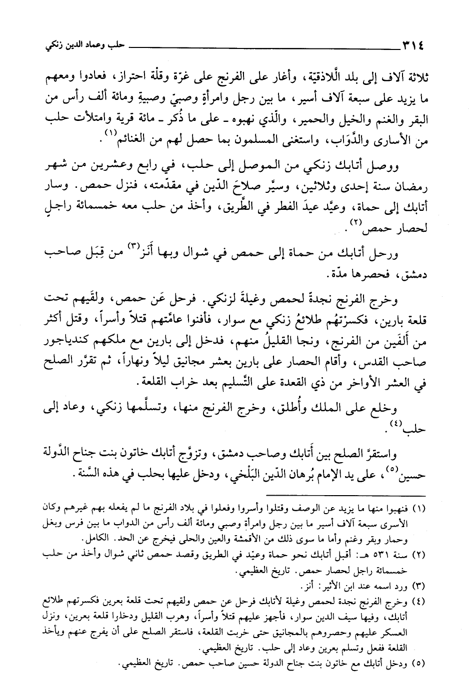 واستقر الصلح بين أتابك وصاحب دمشق، وتزوج أتابك خاتون بنت جناح الدولة حسين، على يد الإمام برهان الدين البلخي، ودخل عليها بحلب في هذه السنة.