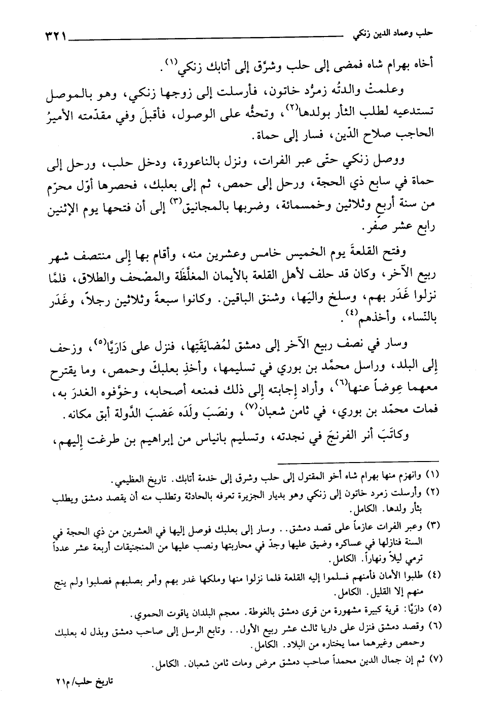 ووصل زنكي حتى عبر الفرات، ونزل بالناعورة، ودخل حلب، ورحل إلى حماة في سابع ذي الحجة، ورحل إلى حمص، ثم إلى بعلبك، فحصرها أول محرم من سنة أربع وثلاثين وخمسمائة، وضربها بالمجانيق إلى أن فتحها يوم الإثنين رابع عشر صفر.