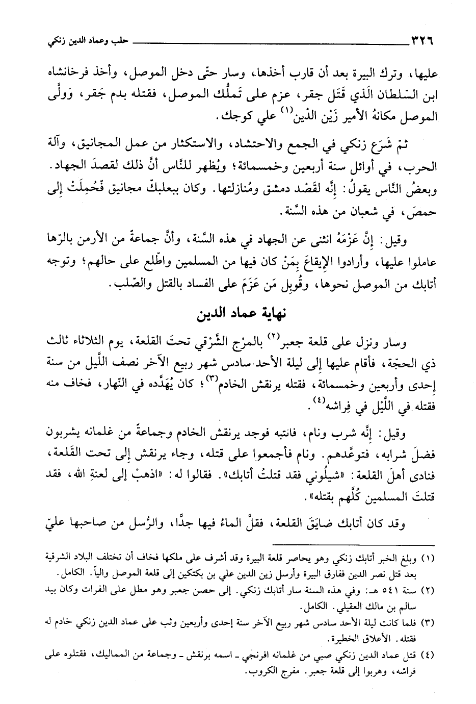 وسار ونزل على قلعة جعبر بالمرج الشرقي تحت القلعة، يوم الثلاثاء ثالث ذي الحجة، فأقام عليها إلى ليلة الأحد. سادس شهر ربيع الآخر نصف الليل من سنة إحدى وأربعين وخمسمائة، فقتله يرنقش الخادم، كان يهدده في النهار، فخاف منه فقتله في الليل في فراشه.