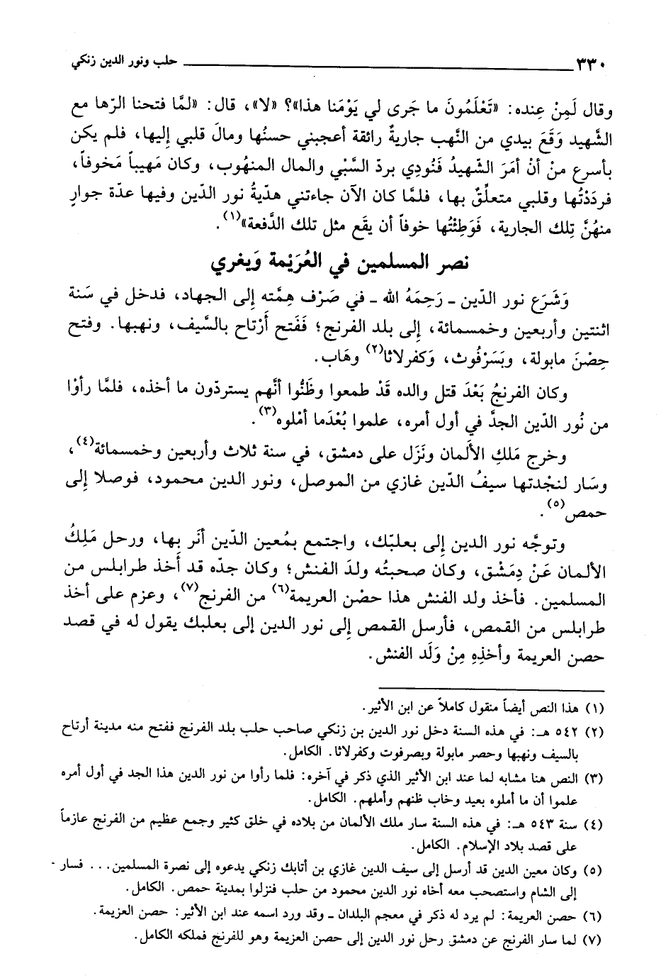 وتوجه نور الدين إلى بعلبك، واجتمع بمعين الدين أنر بها، ورحل ملك الألمان عن دمشق، وكان صحبته ولد الفنش، وكان جده قد أخذ طرابلس من المسلمين. فأخذ ولد الفنش هذا حصن العريمة من الفرنج، وعزم على أخذ طرابلس من القمص، فأرسل القمص إلى نور الدين إلى بعلبك يقول له في قصد حصن العريمة وأخذه من ولد الفنش.