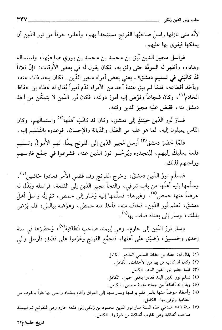 لأنه متى نارلها راسل صاحبها الفرنج مستنجداً بهم، وأعانوه خوفاً من نور الدين أن يملكها فيقوى بها عليهم.