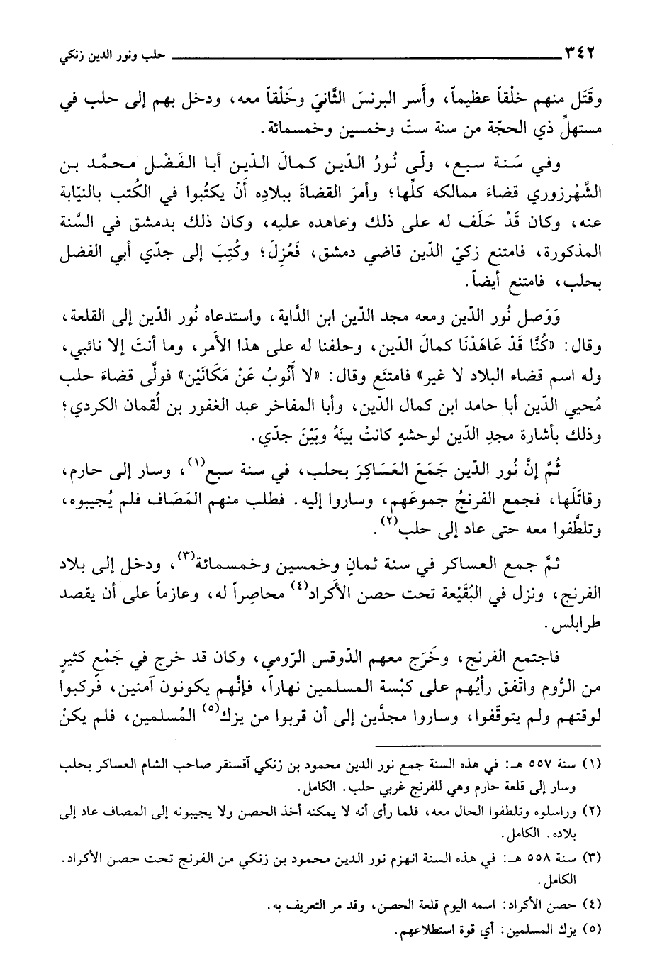 وقتل منهم خلقاً عظيماً، وأسر البرنس الثاني وخلقاً معه، ودخل بهم إلى حلب في مستهل ذي الحجة من سنة ست وخمسين وخمسمائة.
