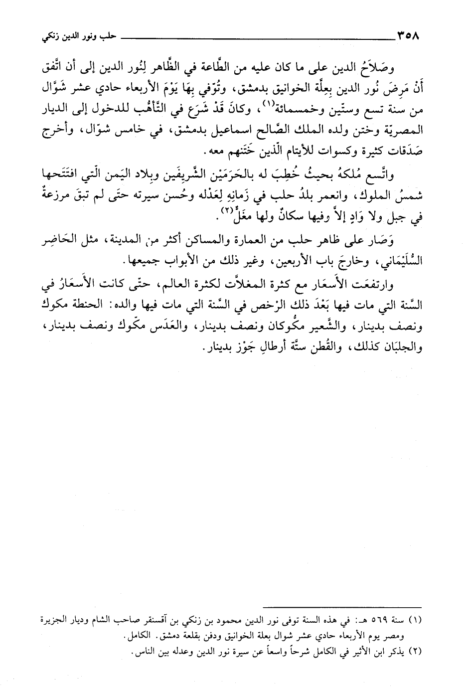 واتسع ملكه بحيث خطب له بالحرمين الشريفين وبلاد اليمن التي افتتحهما شمس الملوك، وانعمر بلد حلب في زمانه لعدله وحسن سيرته حتى لم تبق مزرعة في جبل ولا واد إلا وفيها سكان ولها مغل.