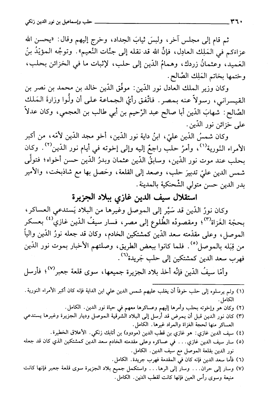 ثم قام إلى مجلس آخر، ولبس ثياب الحداد، وخرج إليهم وقال: يحسن الله عزاءكم في الملك العادل، فإن الله قد نقله إلى جنات النعيم. وتوجه المؤيد بن العميد، وعثمان زردك، وهمام الدين إلى حلب، لإثبات ما في الخزائن بحلب، وختمها بخاتم الملك الصالح.
