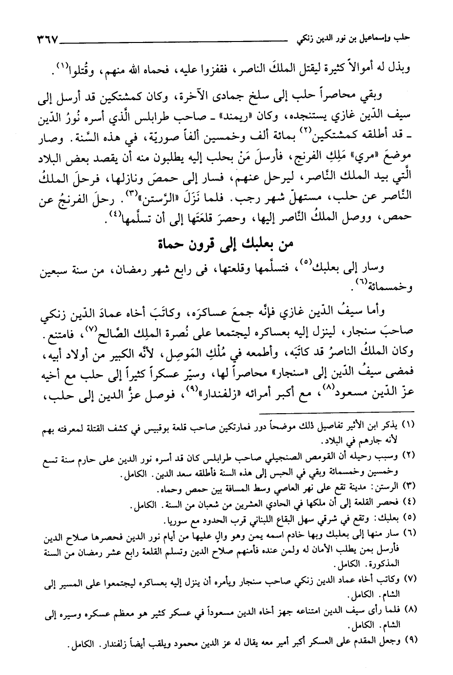 وسار إلى بعلبك، فتسلمها وقلعتها، فى رابع شهر رمضان، من سنة سبعين وخمسمائة.