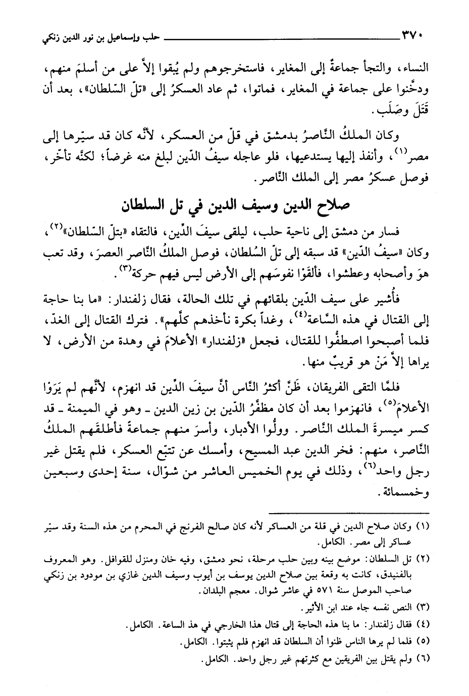 فأشير على سيف الدين بلقائهم في تلك الحالة، فقال زلفندار: ما بنا حاجة إلى القتال في هذه الساعة، وغداً بكرة نأخذهم كلهم. فترك القتال إلى الغد، فلما أصبحوا اصطفوا للقتال، فجعل زلفندار الأعلام في وهدة من الأرض، لا يراها إلا من هو قريب منها.