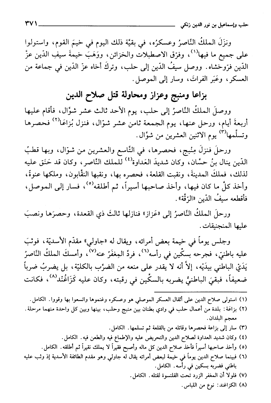 ونزل الملك الناصر وعسكره، في بقية ذلك اليوم في خيم القوم، واستولوا على جميع ما فيها، وفرق الاصطبلات والخزائن، ووهب خيمة سيف الدين عز الدين فروخشاه. ووصل سيف الدين إلى حلب، وترك أخاه عز الدين في جماعة من العسكر، وعبر الفرات، وسار إلى الموصل.