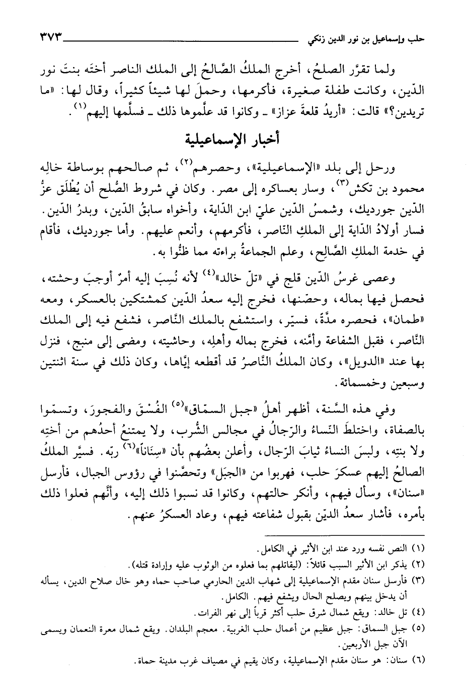 وفي هذه السنة، أظهر أهل جبل السماق الفسق والفجور، وتسموا بالصفاة، واختلط النساء والرجال في مجالس الشرب، ولا يمتنع أحدهم من أخته ولا بنته، ولبس النساء ثياب الرجال، وأعلن بعضهم بأن سناناً ربه. فسير الملك الصالح إليهم عسكر حلب، فهربوا من الجبل وتحصنوا في رؤوس الجبال، فأرسل سنان، وسأل فيهم، وأنكر حالتهم، وكانوا قد نسبوا ذلك إليه، وأنهم فعلوا ذلك بأمره، فأشار سعد الدين بقبول شفاعته فيهم، وعاد العسكر عنهم.