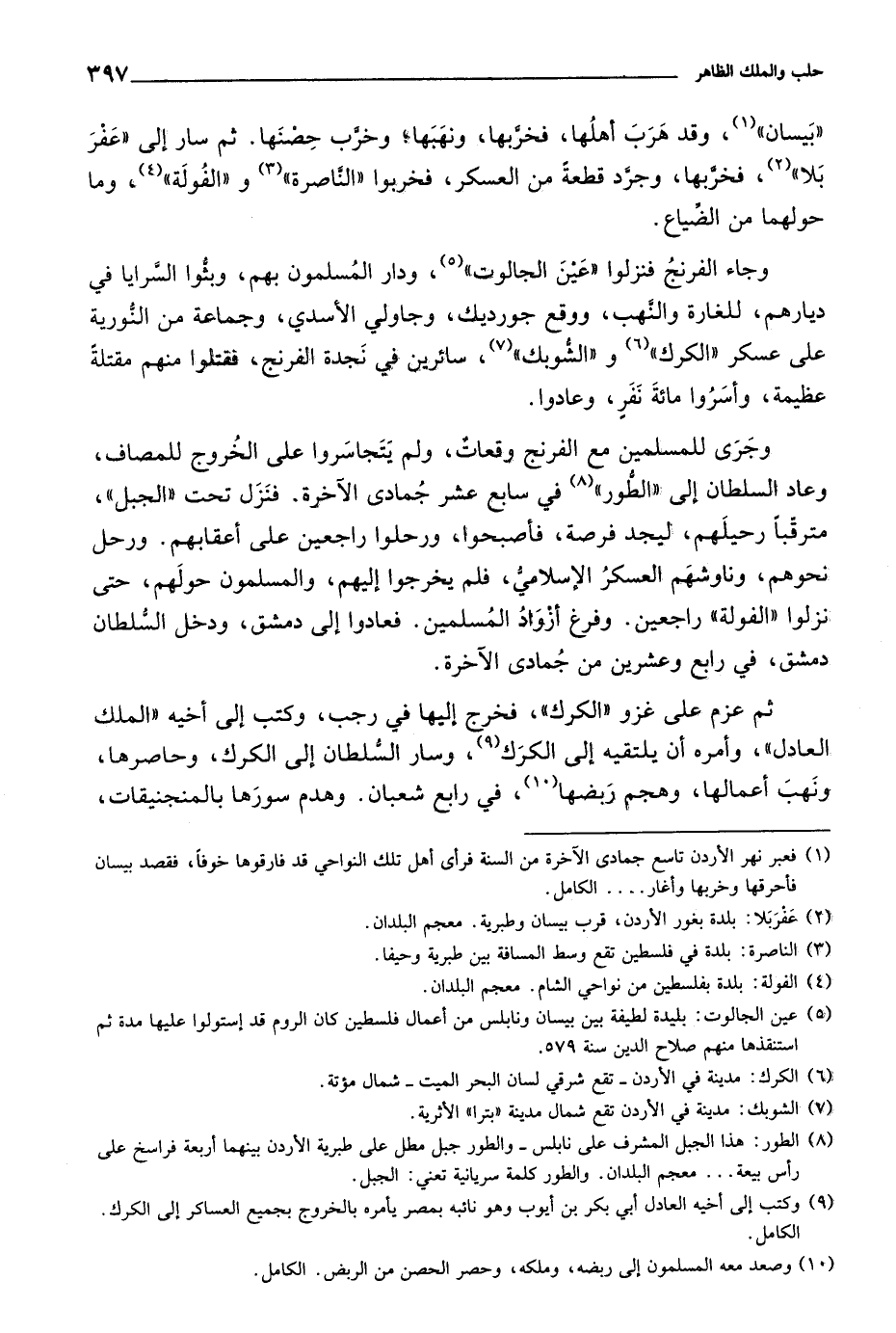 وجاء الفرنج فنزلوا عين الجالوت، ودار المسلمون بهم، وبثوا السرايا في ديارهم، للغارة والنهب، ووقع جورديك، وجاولي الأسدي، وجماعة من النورية على عسكر الكرك والشوبك، سائرين في نجدة الفرنج، فقتلوا منهم مقتلة عظيمة، وأسروا مائة نفر، وعادوا.