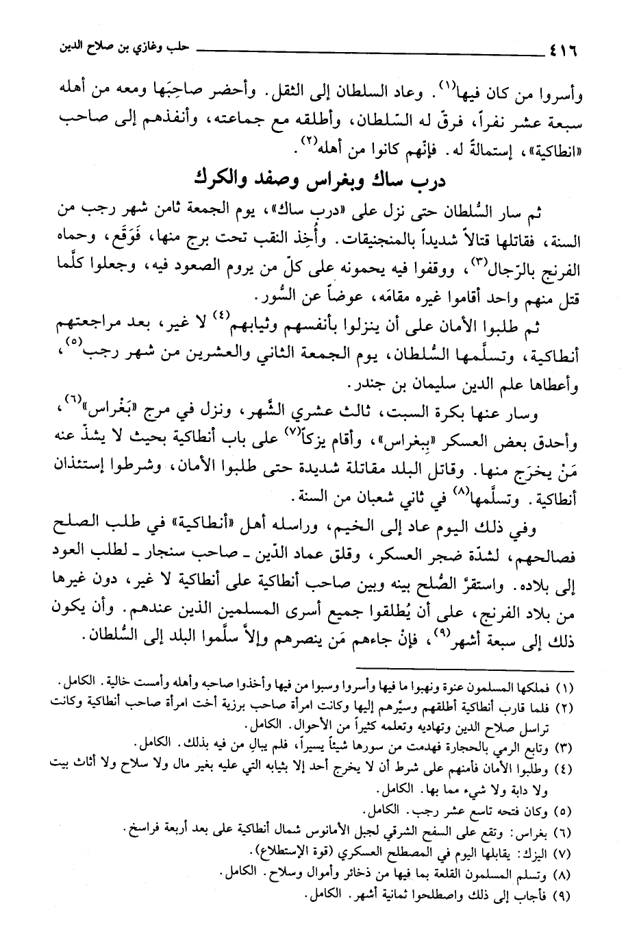 وأسروا من كان فيها. وعاد السلطان إلى الثقل. وأحضر صاحبها ومعه من أهله سبعة عشر نفراً، فرق له السلطان، وأطلقه مع جماعته، وأنفذهم إلى صاحب انطاكية، إستمالة له. فإنهم كانوا من أهله.