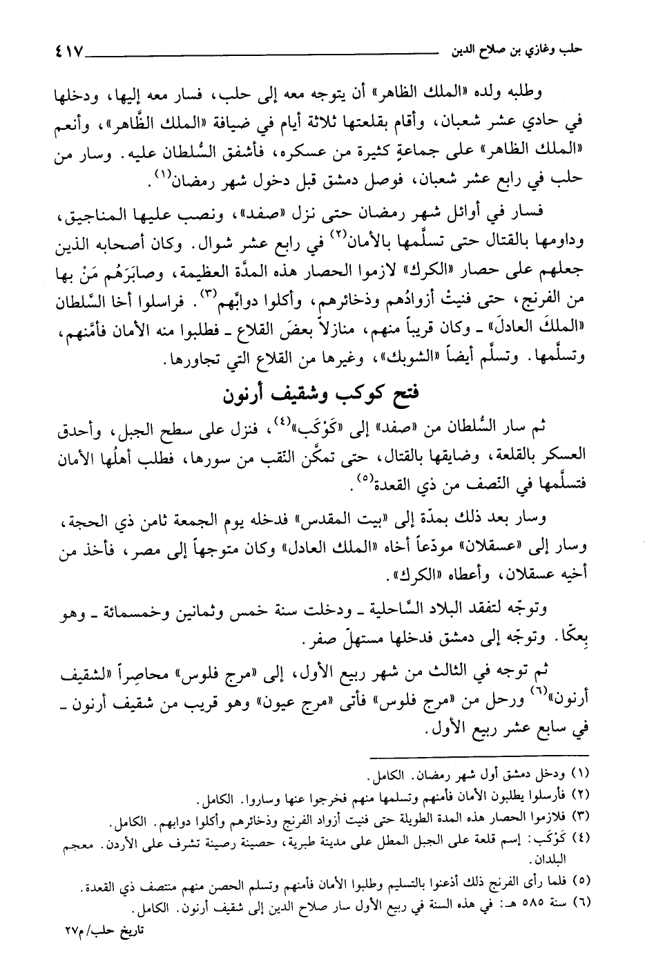 ثم سار السلطان من صفد إلى كوكب، ف نزل على سطح الجبل، وأحدق العسكر بالقلعة، وضايقها بالقتال، حتى تمكن النقب من سورها، فطلب أهلها الأمان فتسلمها في النصف من ذي القعدة. وسار بعد ذلك بمدة إلى بيت المقدس فدخله يوم الجمعة ثامن ذي الحجة، وسار إلى عسقلان مودعاً أخاه الملك العادل وكان متوجها إلى مصر، فأخذ من أخيه عسقلان، وأعطاه الكرك. وتوجه لتفقد البلاد الساحلية ودخلت سنة خمس وثمانين وخمسمائة وهو بعكا. وتوجه إلى دمشق فدخلها مستهل صفر.