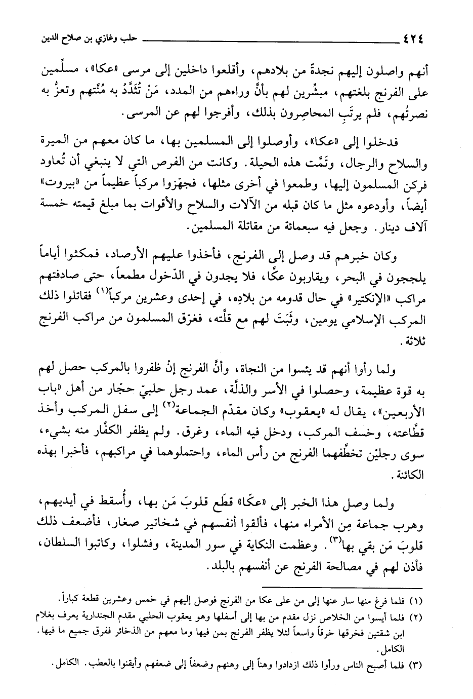 فدخلوا إلى عكا، وأوصلوا إلى المسلمين بها، ما كان معهم من الميرة والسلاح والرجال، وتمت هذه الحيلة. وكانت من الفرص التي لا ينبغي أن تعاود فركن المسلمون إليها، وطمعوا في أخرى مثلها، فجهزوا مركباً عظيماً من بيروت أيضاً، وأودعوه مثل ما كان قبله من الآلات والسلاح والأقوات بما مبلغ قيمته خمسة آلاف دينار. وجعل فيه سبعمائة من مقاتلة المسلمين.