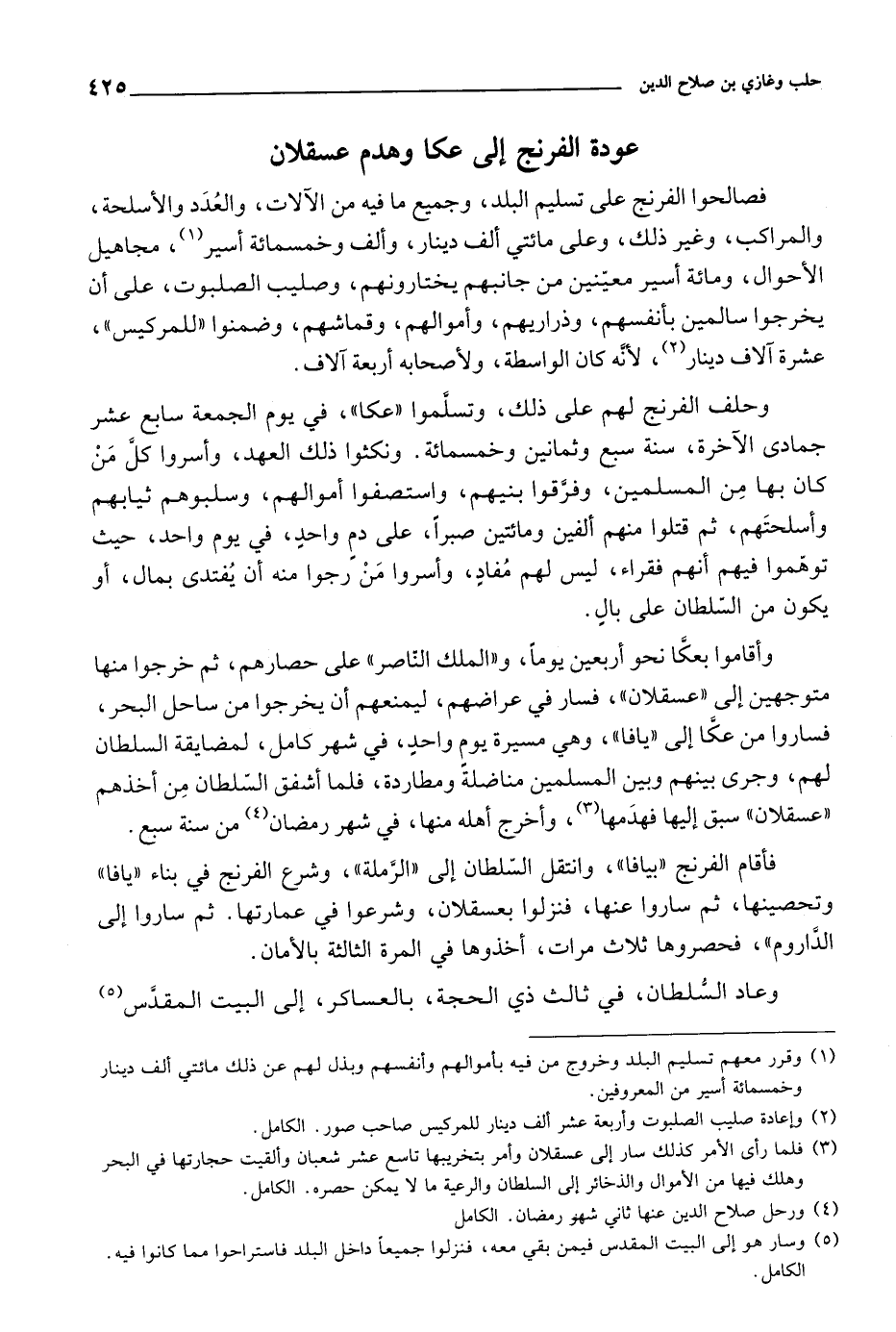 وعاد السلطان، في ثالث ذي الحجة، بالعساكر، إلى البيت المقدس