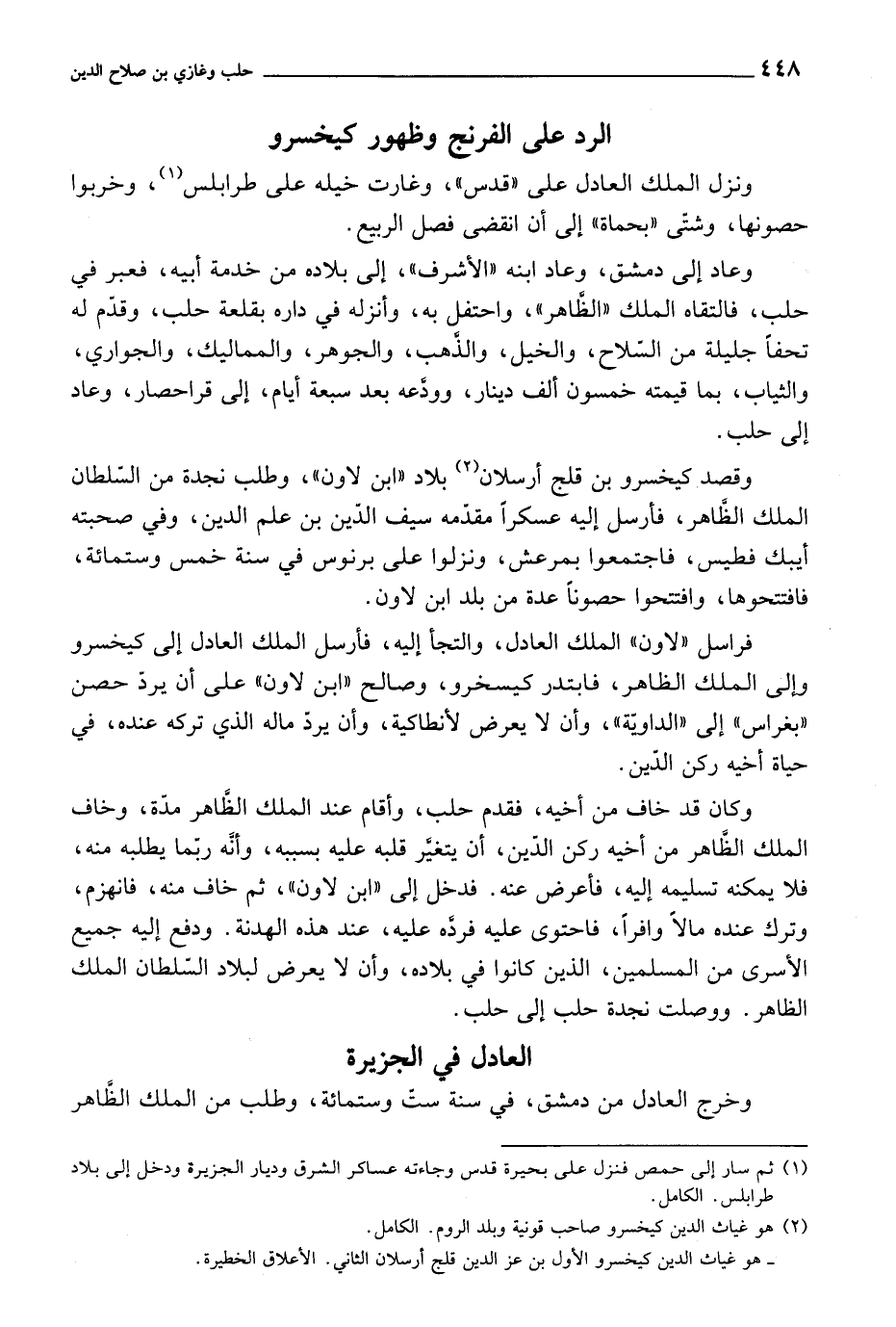 وكان قد خاف من أخيه، فقدم حلب، وأقام عند الملك الظاهر مدة، وخاف الملك الظاهر من أخيه ركن الدين، أن يتغير قلبه عليه بسببه، وأنه ربما يطلبه منه، فلا يمكنه تسليمه إليه، فأعرض عنه. فدخل إلى ابن لاون، ثم خاف منه، فانهزم، وترك عنده مالاً وافراً، فاحتوى عليه فرده عليه، عند هذه الهدنة. ودفع إليه جميع الأسرى من المسلمين، الذين كانوا في بلاده، وأن لا يعرض لبلاد السلطان الملك الظاهر. ووصلت نجدة حلب إلى حلب.