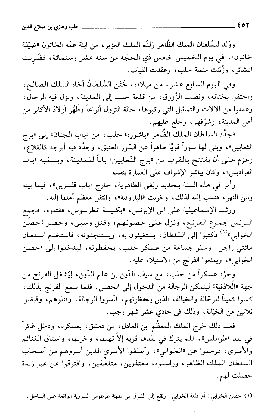 وأمر قي هذه السنة بتجديد ربض الظاهرية، خارج باب قنسرين، فيما بينه وبين النهر، فنسب إليه لذلك، وخربت الياروقية، وانتقل معظم أهلها إليه.