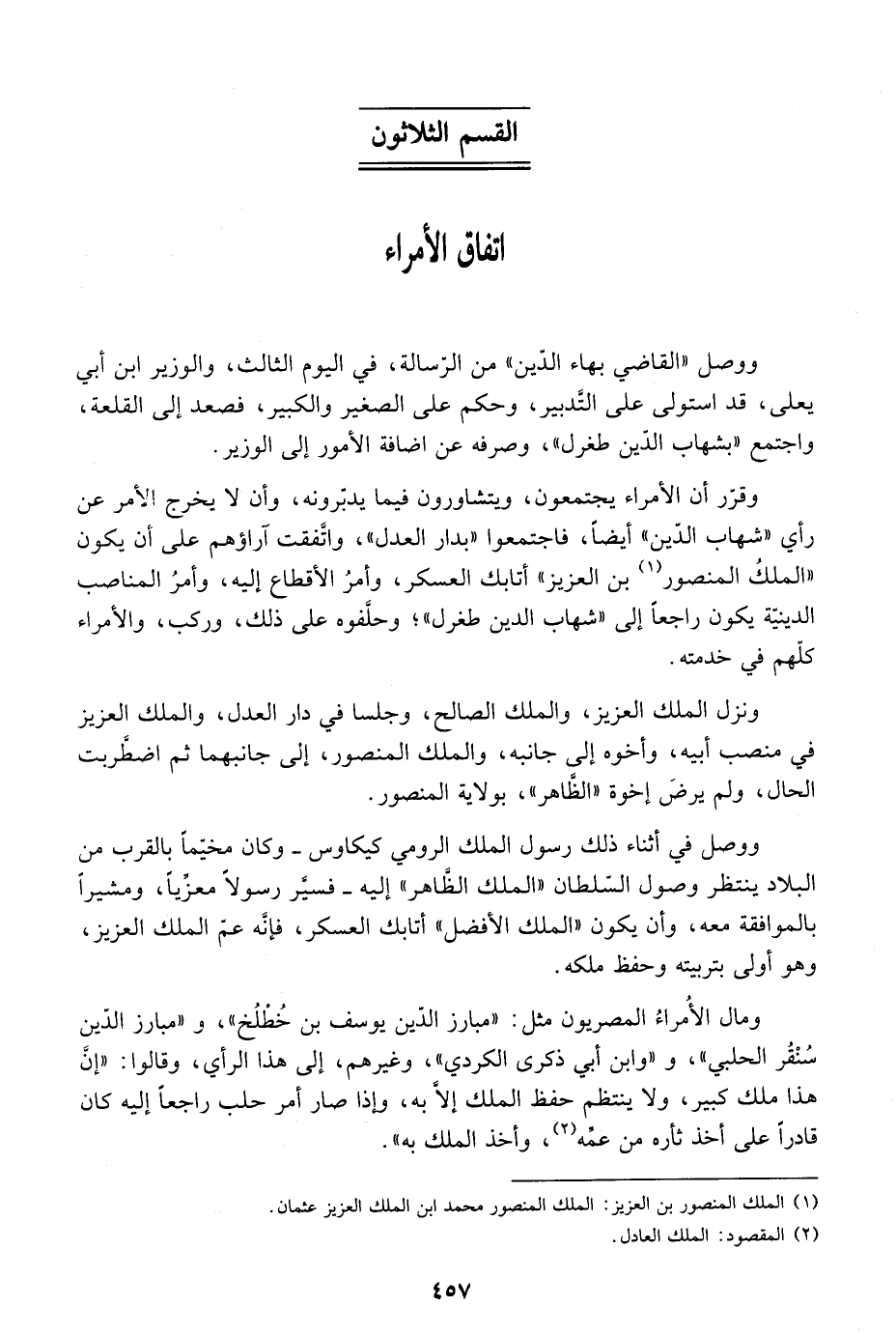 وقرر أن الأمراء يجتمعون، ويتشاورون فيما يدبرونه، وأن لا يخرج الأمر عن رأي شهاب الدين أيضاً، فاجتمعوا بدار العدل، واتفقت أراؤهم على أن يكون الملك المنصور بن العزيز أتابك العسكر، وأمر الأقطاع إليه، وأمر المناصب الدينية يكون راجعاً إلى شهاب الدين طغرل، وحلفوه على ذلك، وركب، والأمراء كلهم في خدمته.