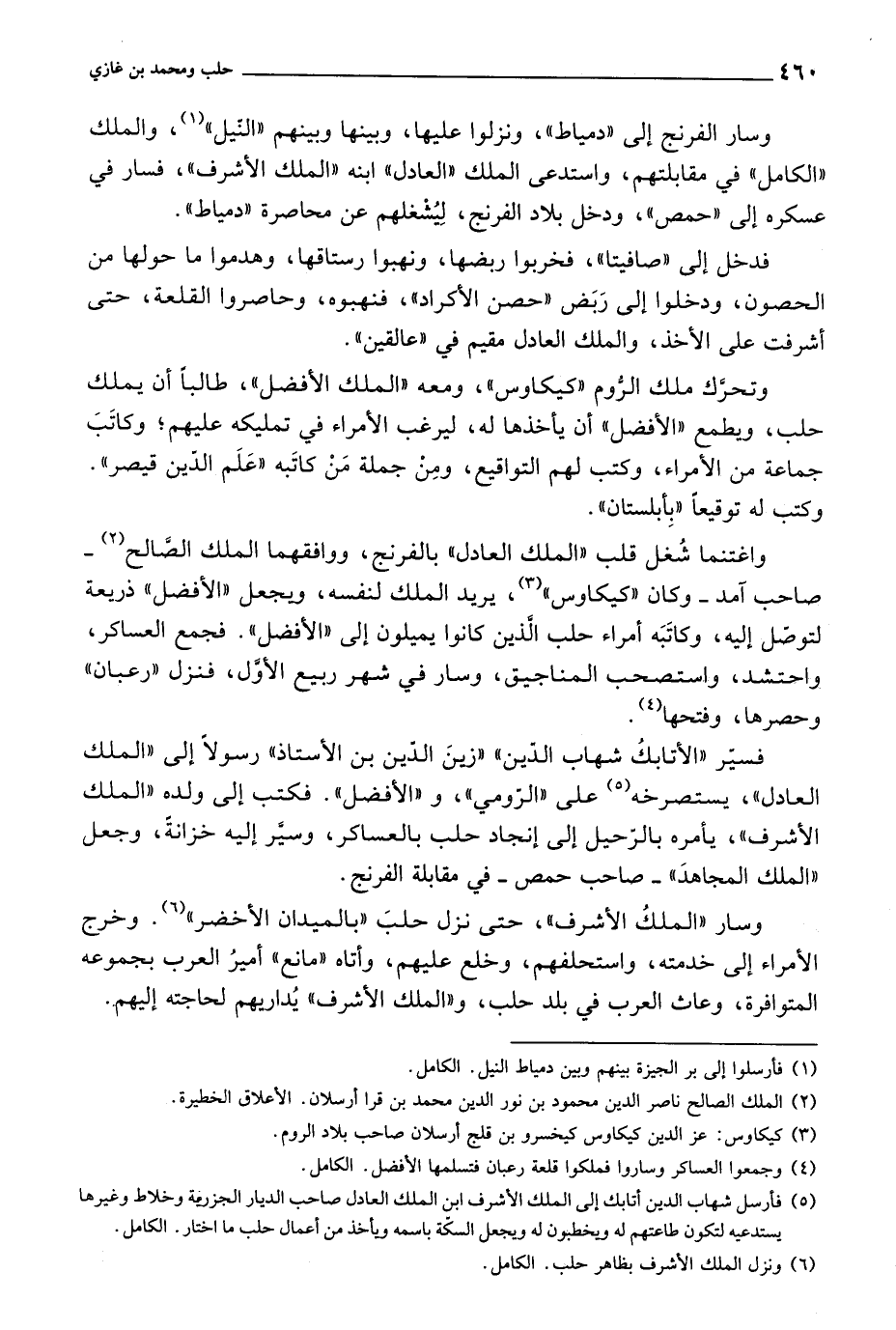 وسار الملك الأشرف، حتى نزل حلب بالميدان الأخضر. وخرج الأمراء إلى خدمته، واستحلفهم، وخلع عليهم، وأتاه مانع أمير العرب بجموعه المتوافرة، وعاث العرب في بلد حلب، والملك الأشرف يداريهم لحاجته إليهم.