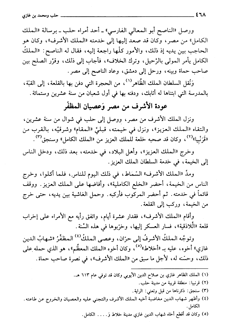 وتوجه الملك الأشرف إلى حران، وعصى الملك المظفر شهاب الدين غازي أخوه، عليه ب أخلاط، وكان أخوه الملك المعظم، هو الذي حمله على ذلك، وحسنه له، لأجل ما سبق من الملك الأشرف، فى نصرة صاحب حماة.