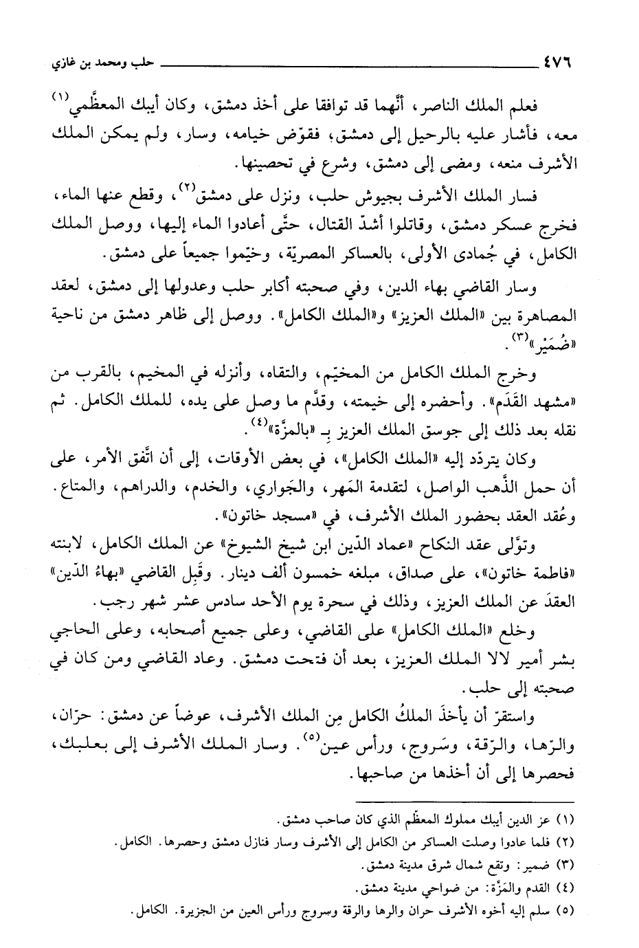 وسار القاضي بهاء الدين، وفي صحبته أكابر حلب وعدولها إلى دمشق، لعقد المصاهرة بين الملك العزيز والملك الكامل. ووصل إلى ظاهر دمشق من ناحية ضمير.