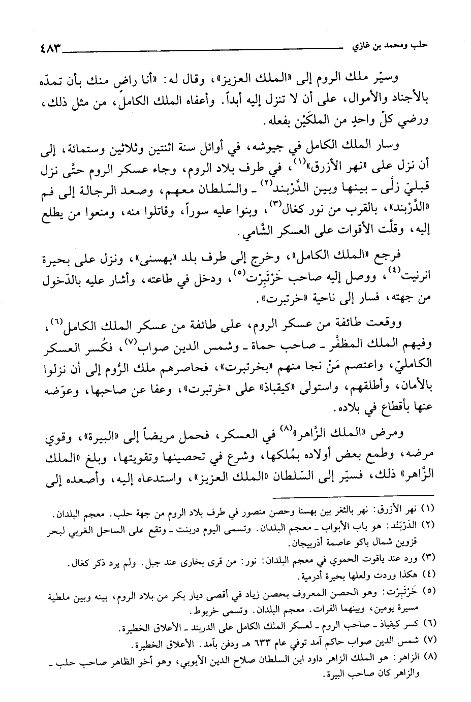 فرجع الملك الكامل، وخرج إلى طرف بلد بهسنى، ونزل على بحير انرنيت، ووصل إليه صاحب خرتبرت، ودخل في طاعته، وأشار عليه بالدخول من جهته، فسار إلى ناحية خرتبرت ووقعت طائفة من عسكر الروم، على طائفة من عسكر الملك الكامل وفيهم الملك المظفر صاحب حماة وشمس الدين صواب، فكسر العسكر الكااملي، واعتصم من نجا منهم بخرتبرت، فحاصرهم ملك الروم إلى أن نزلو بالأمان، وأطلقهم، واستولى كيقباذ على خرتبرت، وعفا عن صاحبها، وعوضه عنها بأقطاع في بلاده.