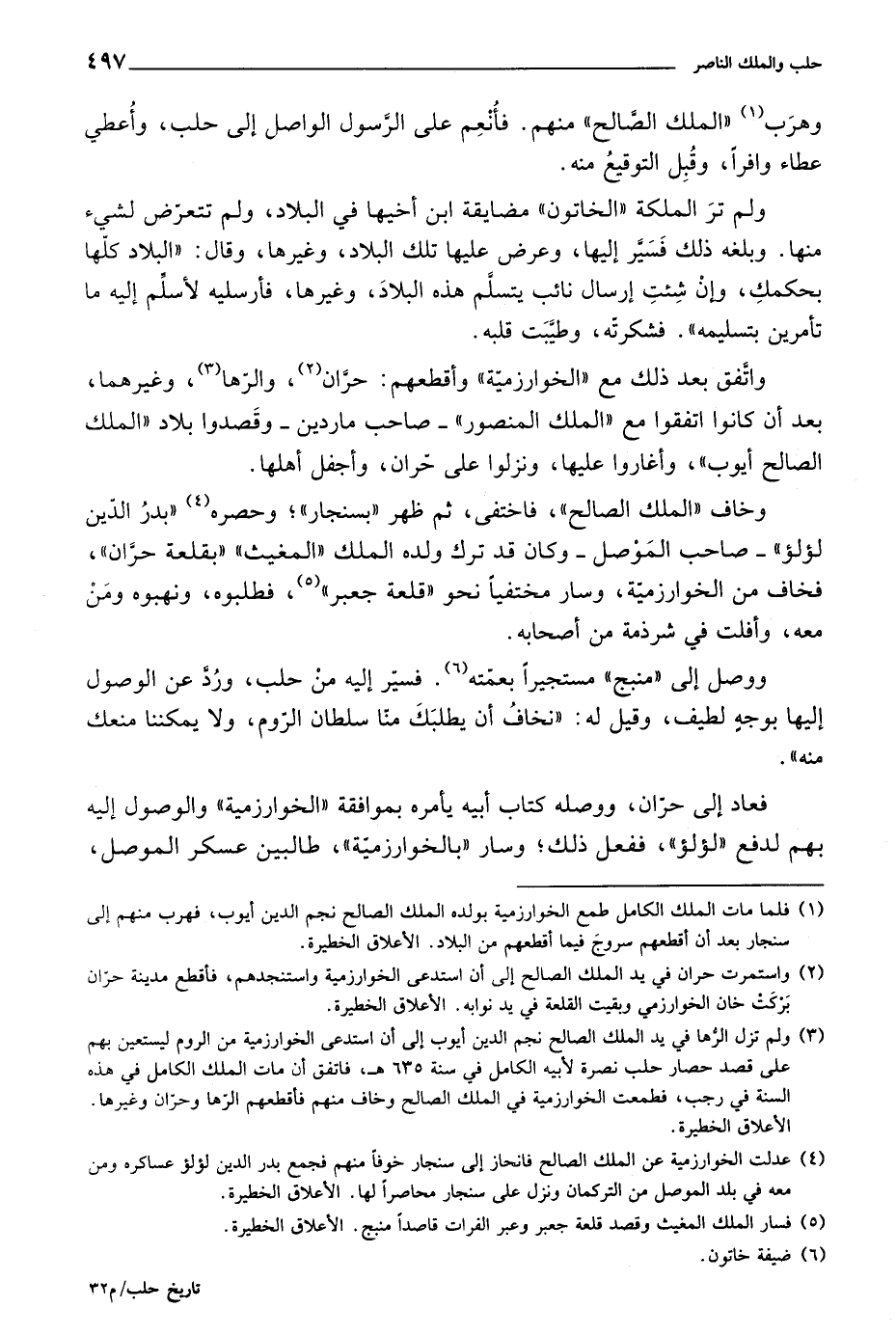واتفق بعد ذلك مع الخوارزمية وأقطعهم: حران، والرها، وغيرهما، بعد أن كانوا اتفقوا مع الملك المنصور صاحب ماردين وقصدوا بلاد الملك الصالح أيوب، وأغاروا عليها، ونزلوا على حران، وأجفل أهلها.