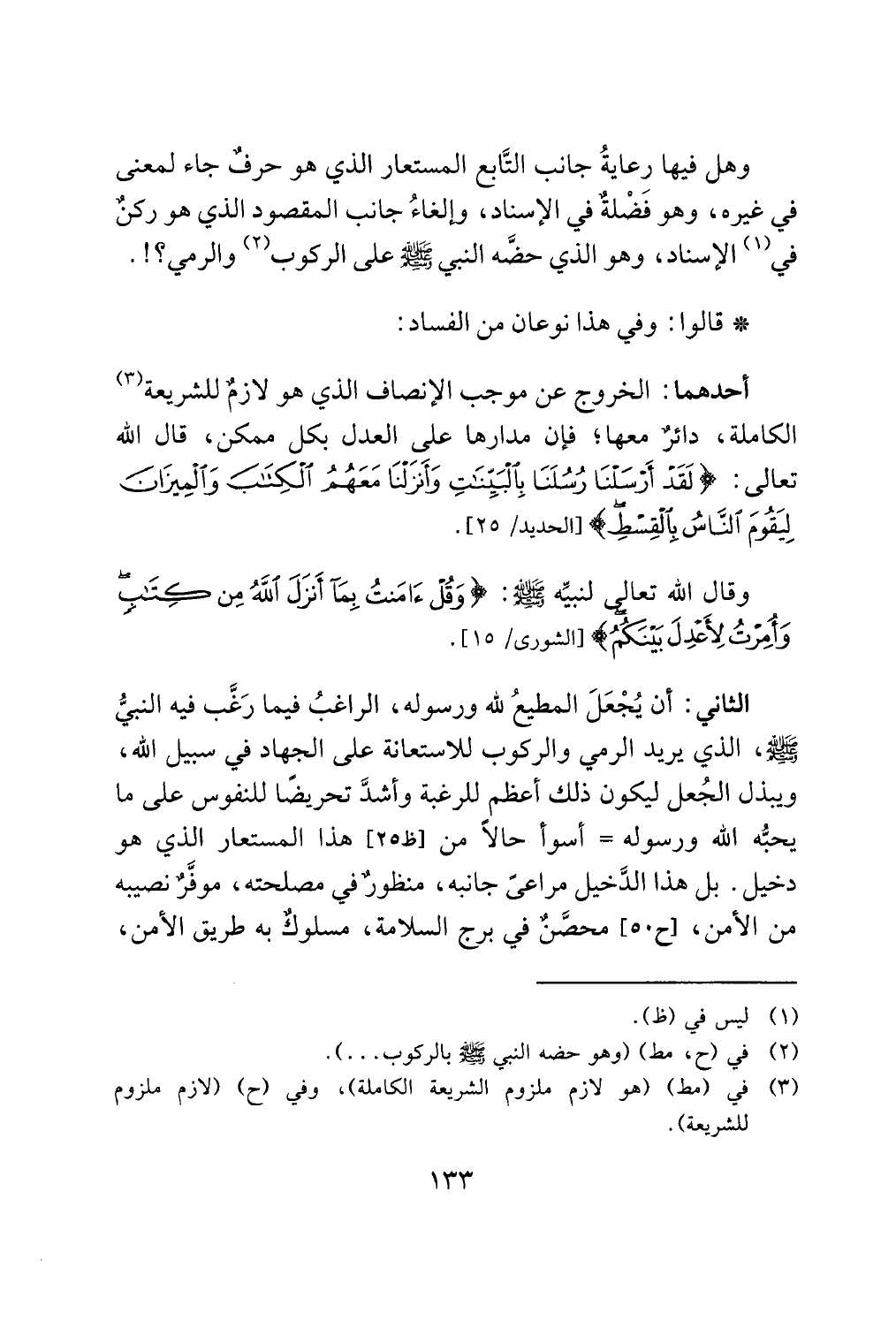 (¬3) في (مط) (هو لازم ملزوم الشريعة الكاملة)، وفي (ح) (لازم ملزوم للشريعة).