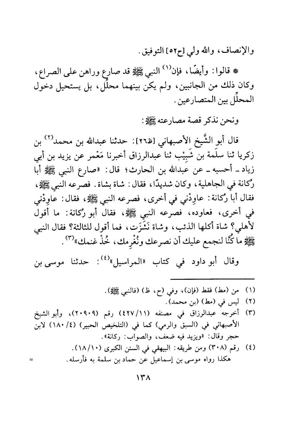 (¬3) أخرجه عبد الرزاق في مصنفه (11/ 427) رقم (20909)، وأبو الشيخ الأصبهاني في (السبق والرمي) كما في (التلخيص الحبير) (4/ 180) لابن حجر وقال: "ويزيد فيه ضعف، والصواب: ركانة".