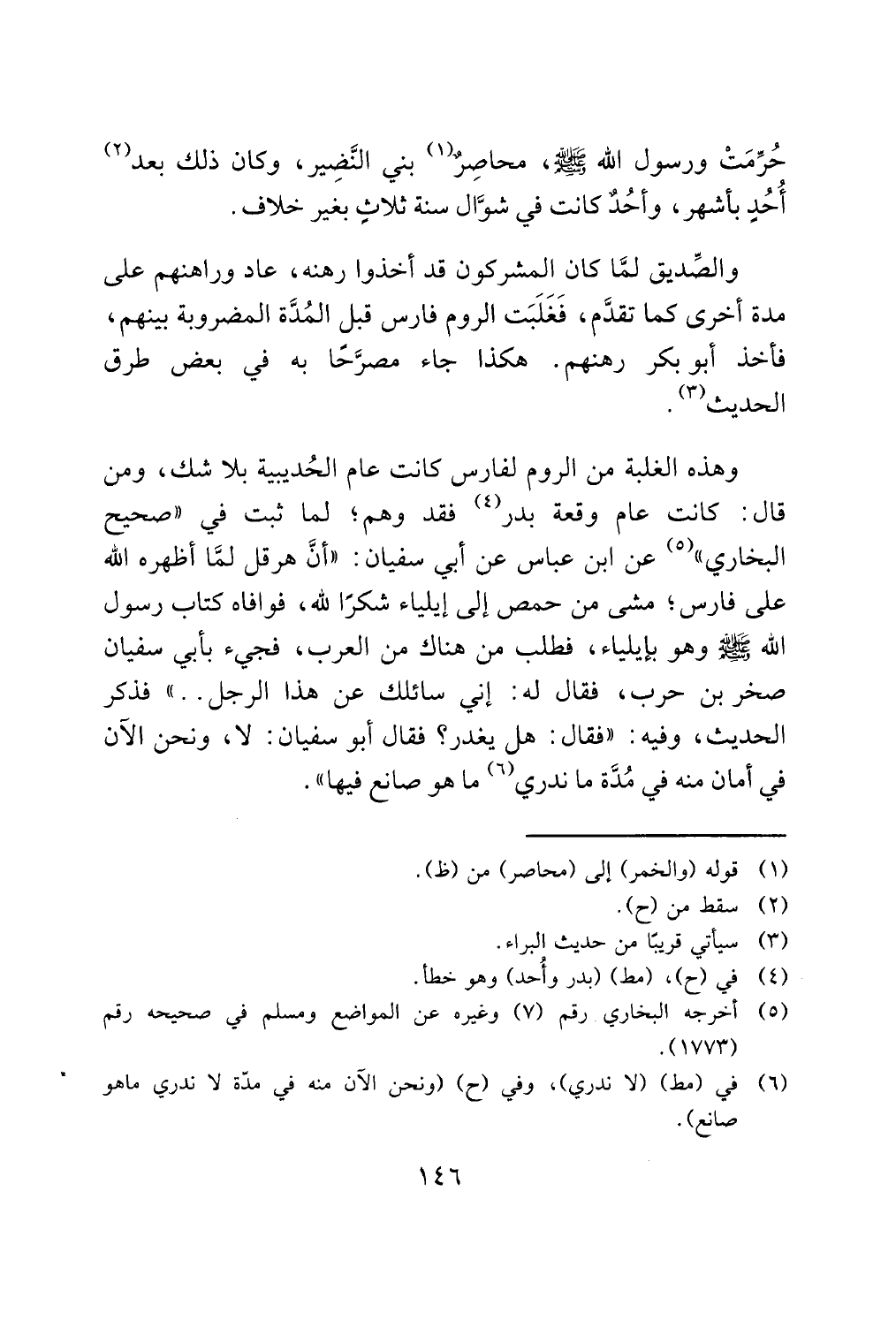 وهذه الغلبة من الروم لفارس كانت عام الحُديبية بلا شك، ومن قال: كانت عام وقعة بدر (¬4) فقد وهم؛ لما ثبت في "صحيح البخاري" (¬5) عن ابن عباس عن أبي سفيان: "أنَّ هرقل لمَّا أظهره الله على فارس؛ مشى من حمص إلى إيلياء شكرًا لله، فوافاه كتاب رسول الله - صلى الله عليه وسلم - وهو بإيلياء، فطلب من هناك من العرب، فجيء بأبي سفيان صخر بن حرب، فقال له: إني سائلك عن هذا الرجل .. " فذكر الحديث، وفيه: "فقال: هل يغدر؟ فقال أبو سفيان: لا، ونحن الآن في أمان منه في مُدَّة ما ندري (¬6) ما هو صانع فيها".
