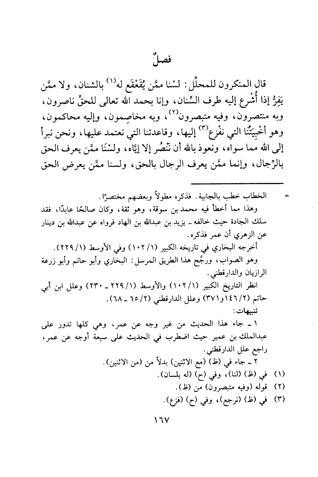 قال المنكرون للمحلِّل: لسْنا ممَّن يُقَعْقَع له (¬1) بالشنان، ولا ممَّن يَفِرُّ إذا أُشْرع إليه طرف السِّنان، وإنا بحمد الله تعالى للحقِّ ناصرون، وبه منتصرون، وفيه متبصرون (¬2)، وبه مخاصِمون، وإليه محاكمون، وهو أخْبِيَتُنَا التي نفْزع (¬3) إليها، وقاعدتنا التي نعتمد عليها، ونحن نبرأ إلى الله مما سواه، ونعوذ بالله أن نَنْصُر إلا إيَّاه، ولسْنَا ممَّن يعرف الحق بالرِّجال، وإنما ممَّن يعرف الرجال بالحق، ولسنا ممَّن يعرض الحق