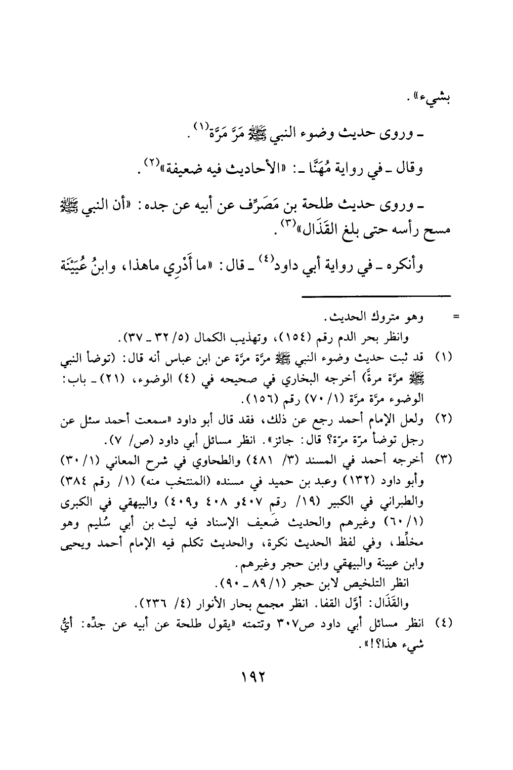 (¬4) انظر مسائل أبي داود ص 307 وتتمته "يقول طلحة عن أبيه عن جدِّه: أيُّ شيء هذا؟! ".