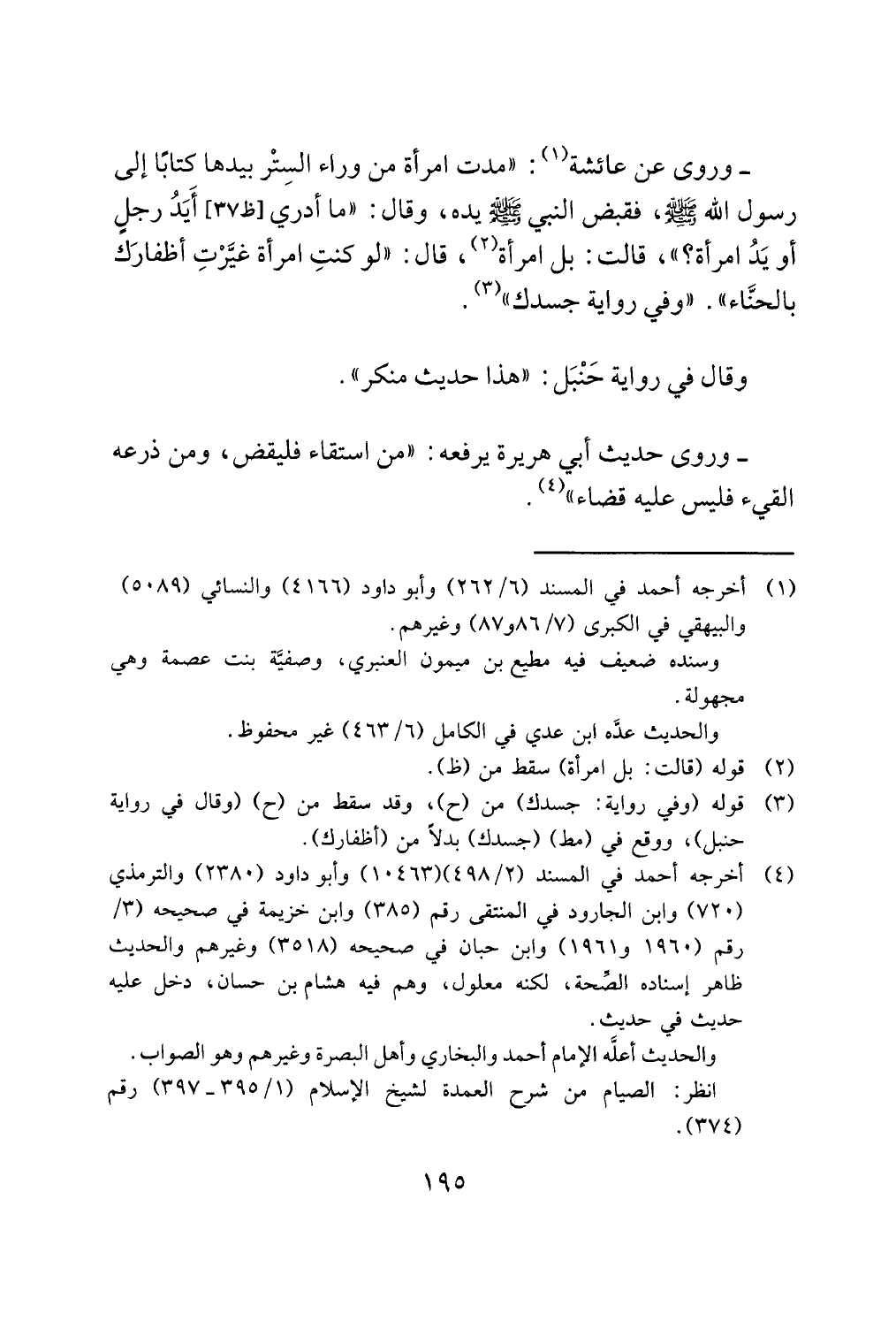 (¬3) قوله (وفي رواية: جسدك) من (ح)، وقد سقط من (ح) (وقال في رواية حنبل)، ووقع في (مط) (جسدك) بدلًا من (أظفارك).