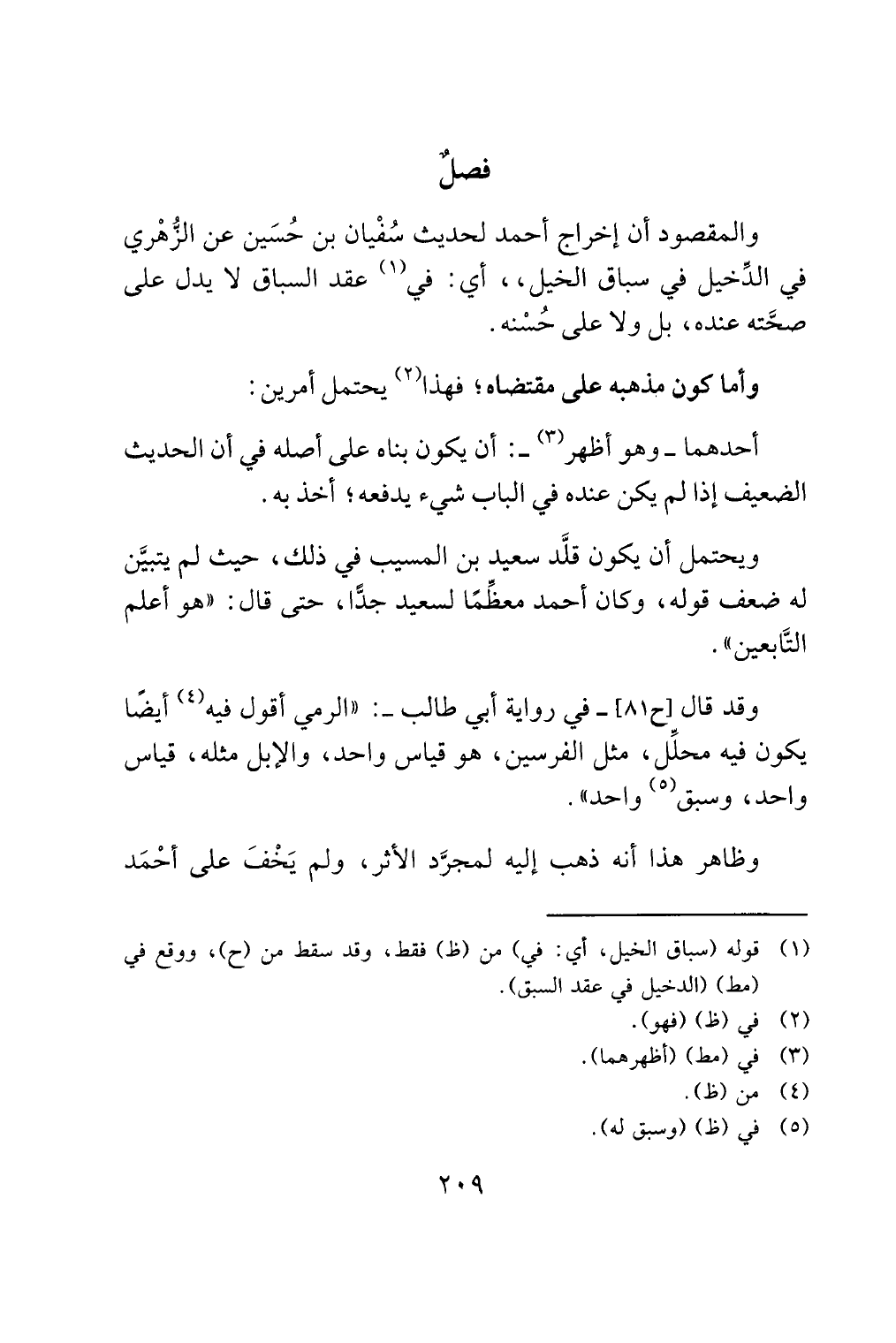 والمقصود أن إخراج أحمد لحديث سُفْيان بن حُسَين عن الزُّهْري في الدِّخيل في سباق الخيل،، أي: في (¬1) عقد السباق لا يدل على صحَّته عنده، بل ولا على حُسْنه.