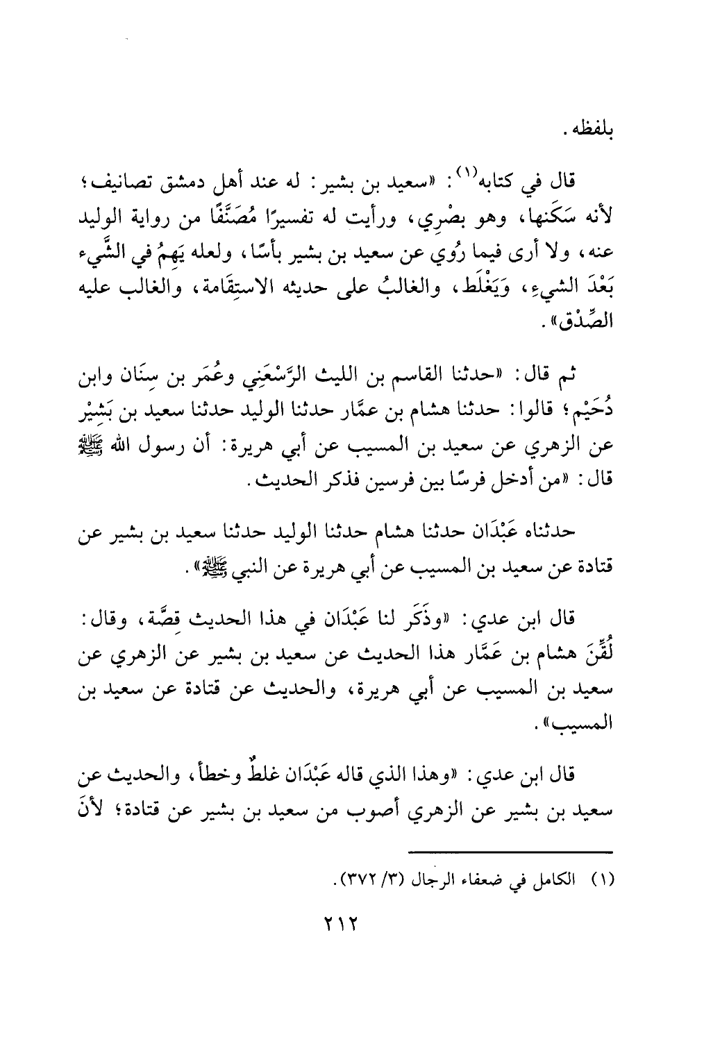 (¬1) الكامل في ضعفاء الرجال (3/ 372).