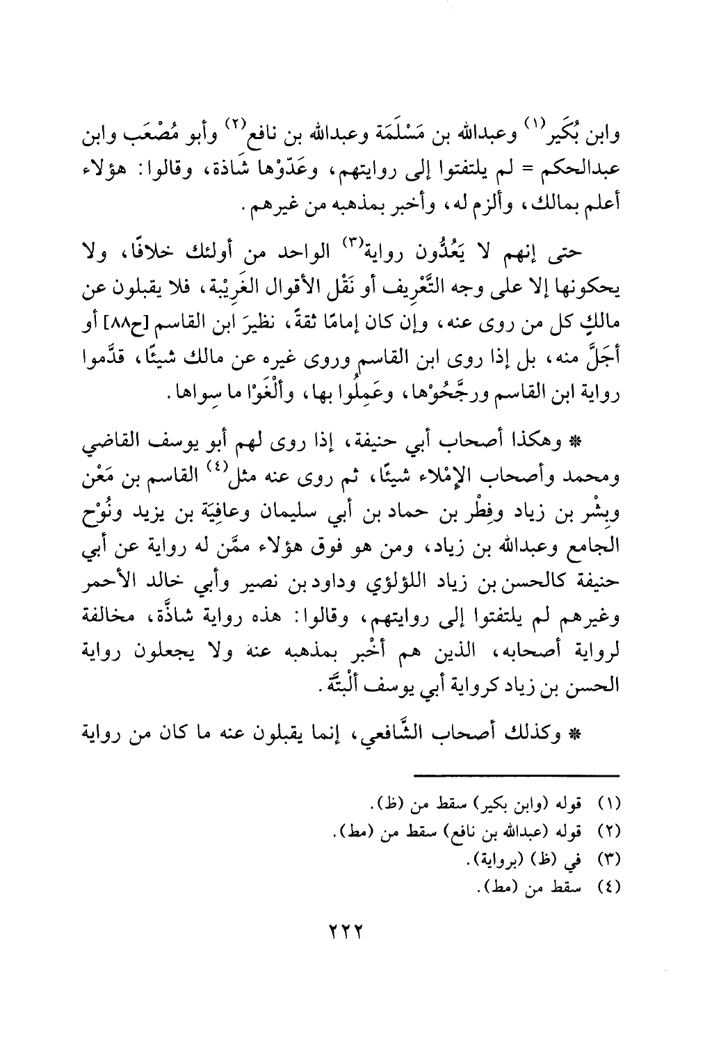 وابن بُكَير (¬1) وعبد الله بن مَسْلَمَة وعبد الله بن نافع (¬2) وأبو مُصْعَب وابن عبد الحكم = لم يلتفتوا إلى روايتهم، وعَدّوْها شَاذة، وقالوا: هؤلاء أعلم بمالك، وألزم له، وأخبر بمذهبه من غيرهم.