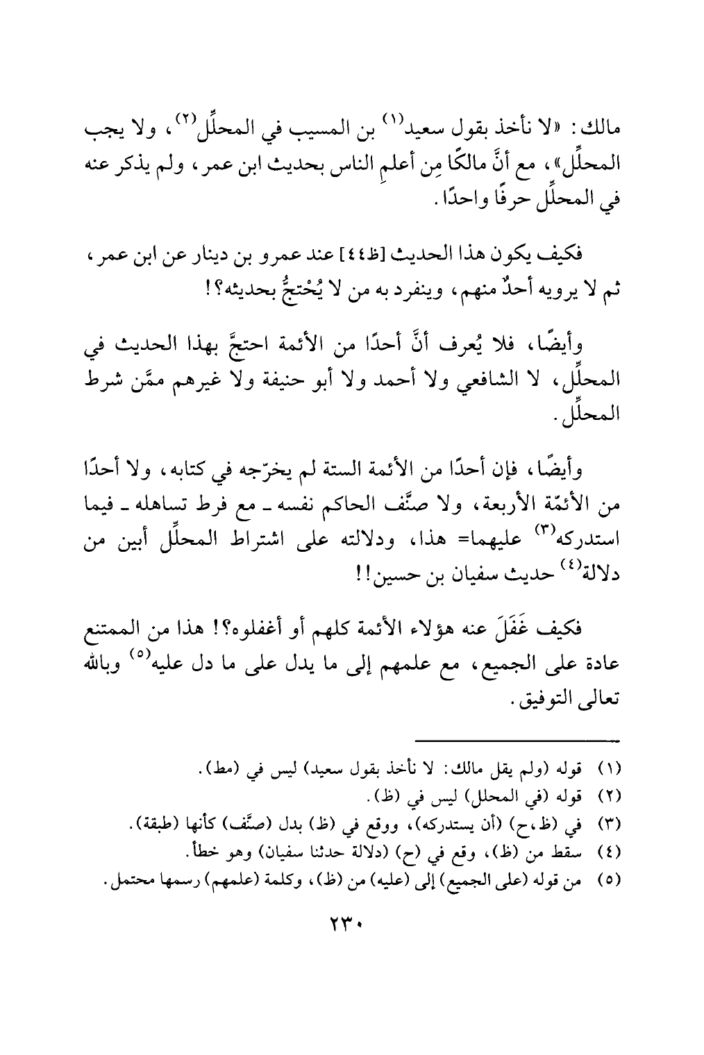 فكيف غَفَلَ عنه هؤلاء الأئمة كلهم أو أغفلوه؟! هذا من الممتنع عادة على الجميع، مع علمهم إلى ما يدل على ما دل عليه (¬5) وبالله تعالى التوفيق.