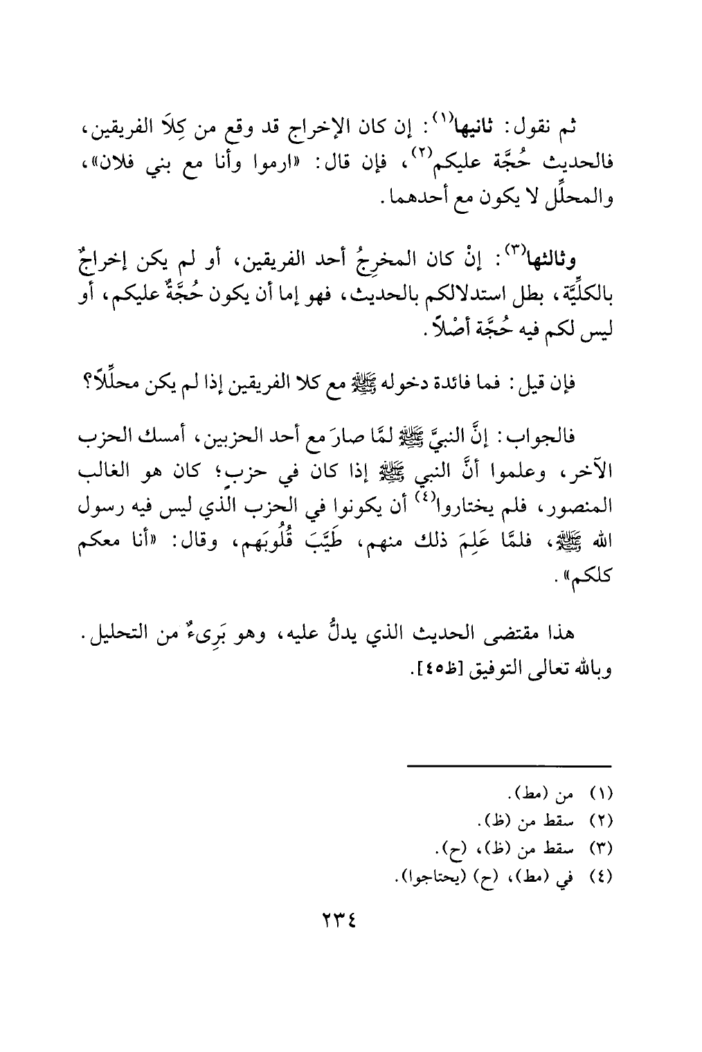 وثالثها (¬3): إنْ كان المخرِجُ أحد الفريقين، أو لم يكن إخراجٌ بالكلِّيَّة، بطل استدلالكم بالحديث، فهو إما أن يكون حُجَّةٌ عليكم، أو ليس لكم فيه حُجَّة أصْلًا.