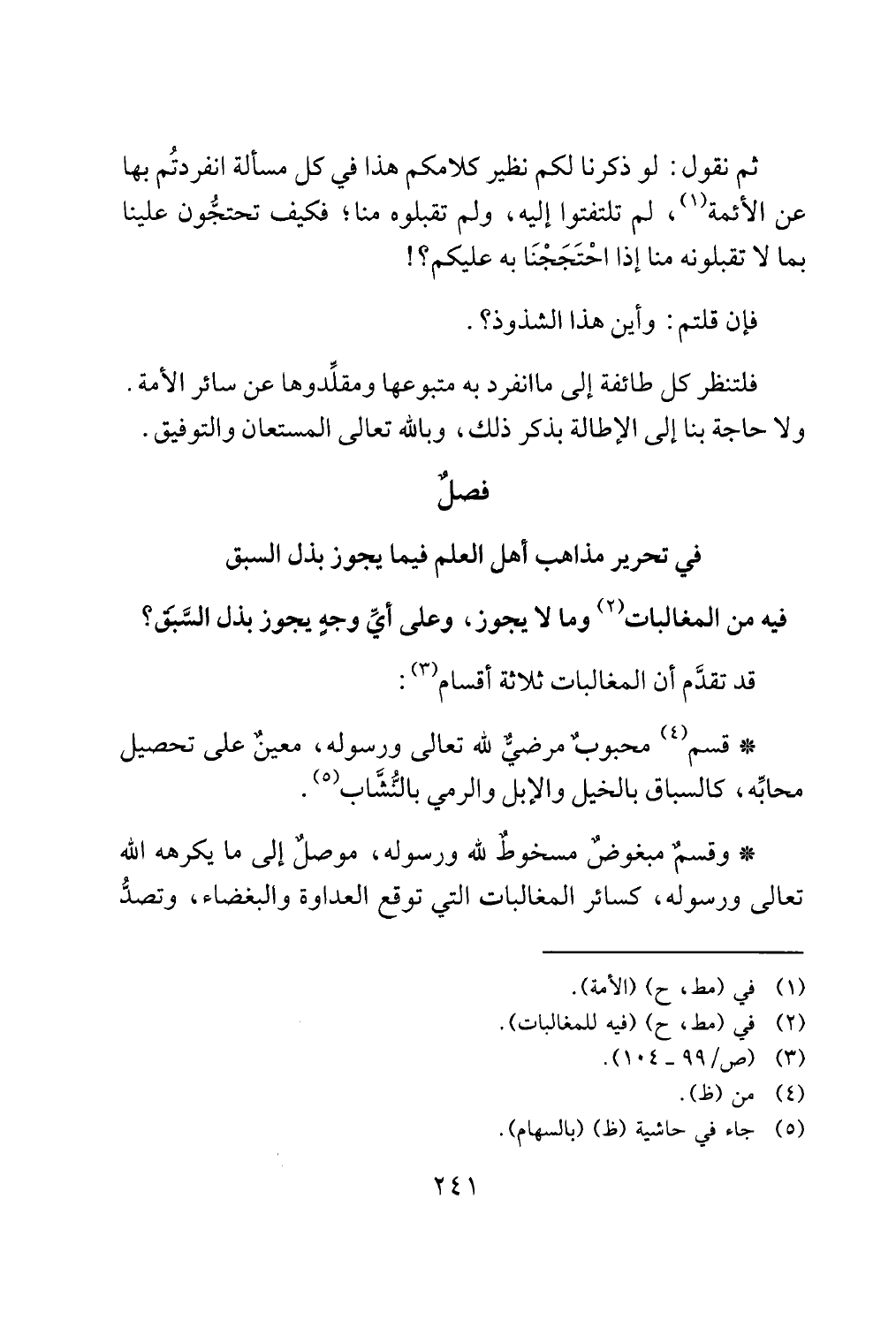 فصلٌ في تحرير مذاهب أهل العلم فيما يجوز بذل السبق فيه من المغالبات (¬2) وما لا يجوز، وعلى أيِّ وجهٍ يجوز بذل السَّبَق؟