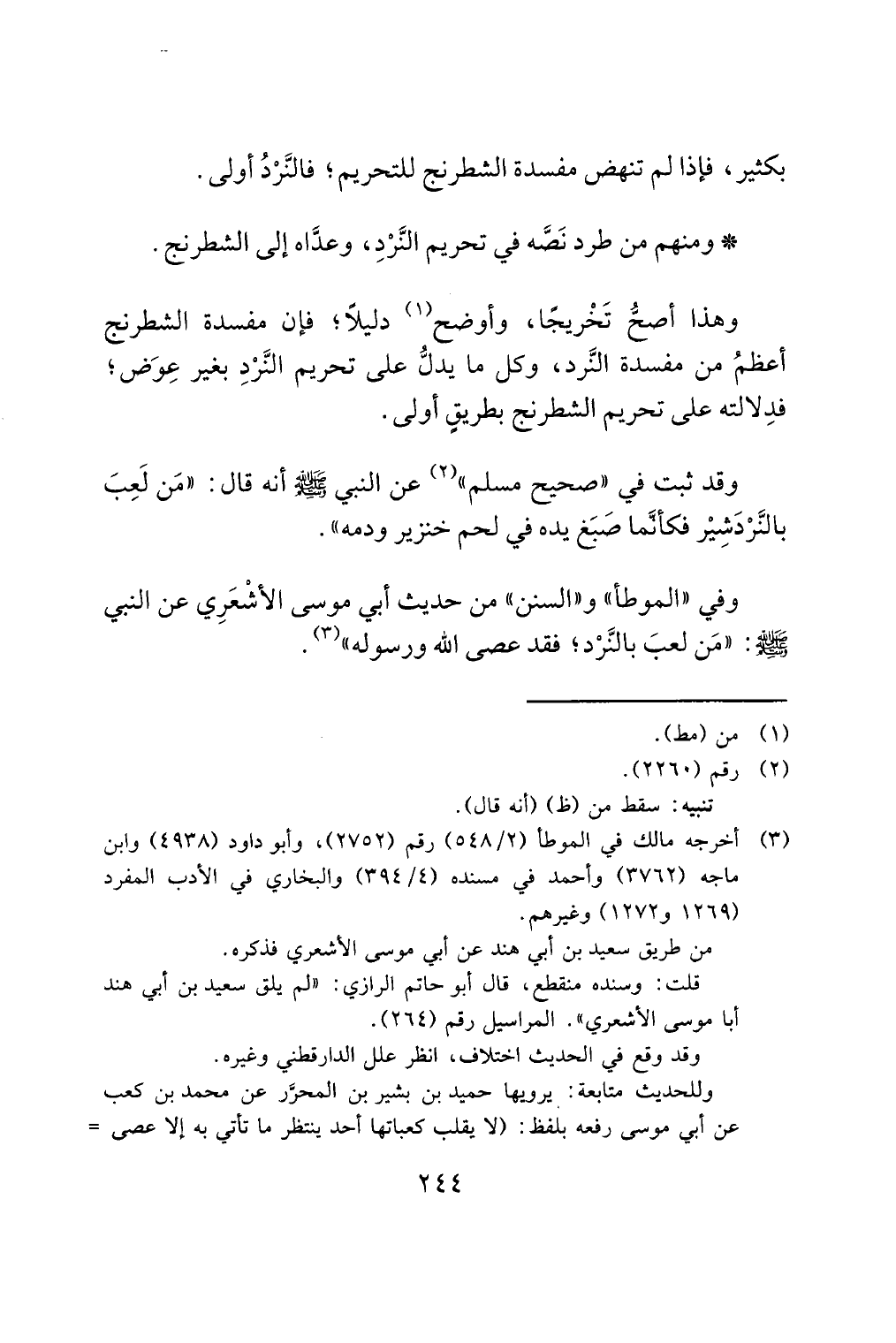بكثير، فإذا لم تنهض مفسدة الشطرنج للتحريم؛ فالنَّرْدُ أولى.