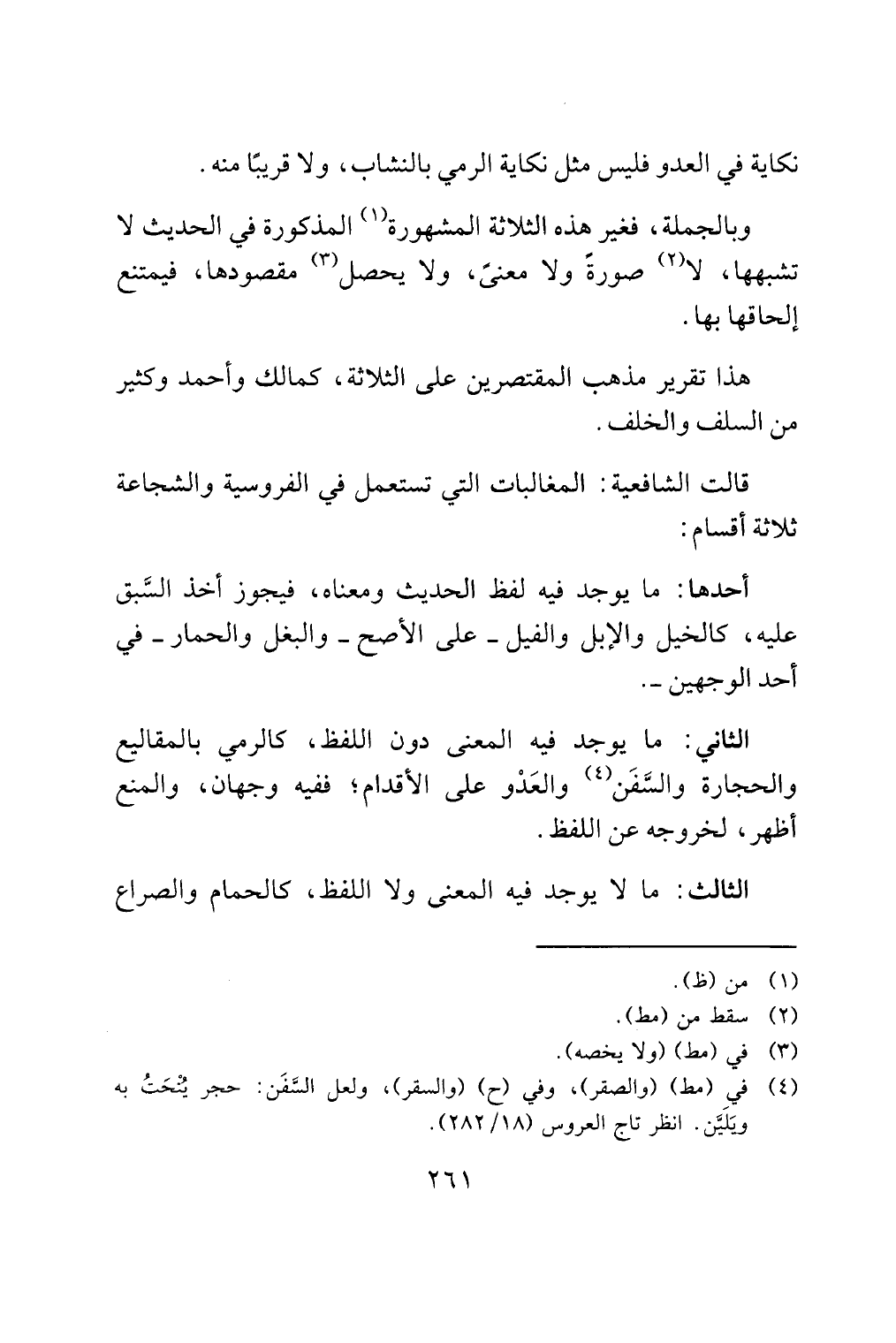 هذا تقرير مذهب المقتصرين على الثلاثة، كمالك وأحمد وكثير من السلف والخلف.