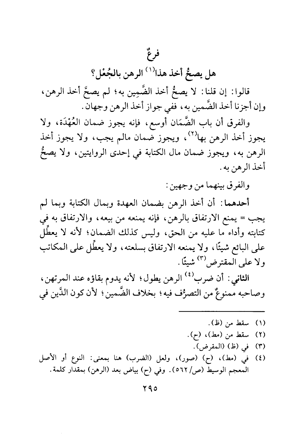 (¬4) في (مط)، (ح) (صور)، ولعل (الضرب) هنا بمعنى: النوع أو الأصل المعجم الوسيط (ص/ 562). وفي (ح) بياض بعد (الرهن) بمقدار كلمة.