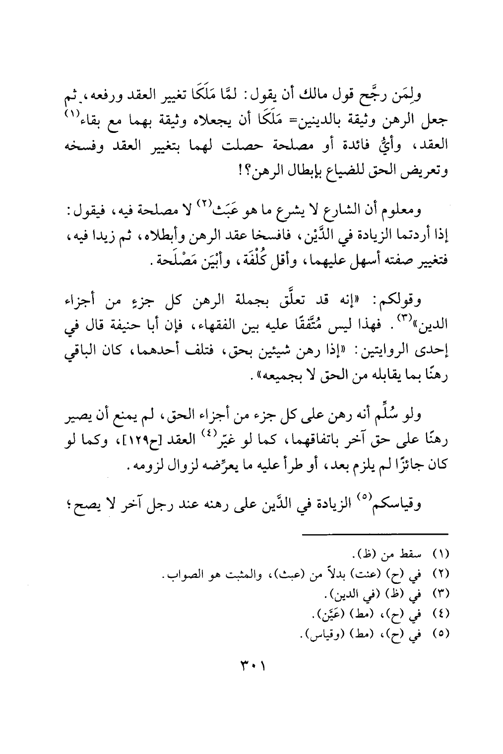 ومعلوم أن الشارع لا يشرع ما هو عَبَث (¬2) لا مصلحة فيه، فيقول: إذا أردتما الزيادة في الدَّيْن، فافسخا عقد الرهن وأبطلاه، ثم زيدا فيه، فتغيير صفته أسهل عليهما، وأقل كُلْفَة، وأبْيَن مَصْلَحة.