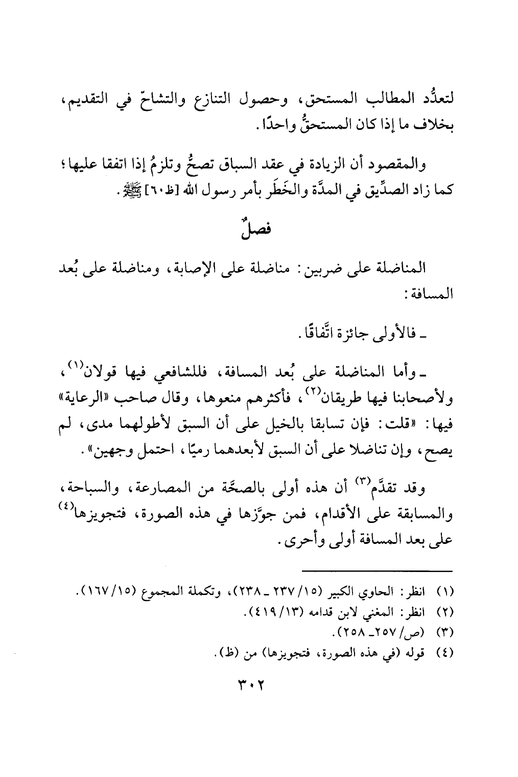 والمقصود أن الزيادة في عقد السباق تصحُّ وتلزمُ إذا اتفقا عليها؛ كما زاد الصدَّيق في المدَّة والخَطَر بأمر رسول الله [ظ 60]- صلى الله عليه وسلم -.
