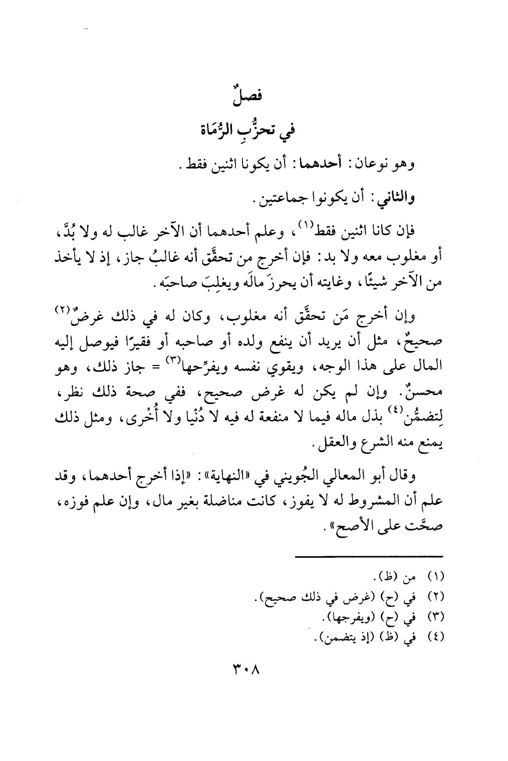 وقال أبو المعالي الجُويني في "النهاية": "إذا أخرج أحدهما، وقد علم أن المشروط له لا يفوز، كانت مناضلة بغير مال، وإن علم فوزه، صحَّت على الأصح".