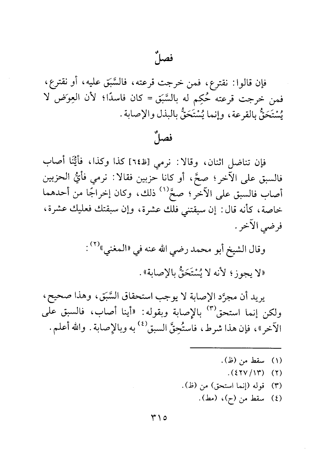يريد أن مجرَّد الإصابة لا يوجب استحقاق السَّبَق، وهذا صحيح، ولكن إنما استحق (¬3) بالإِصابة وبقوله: "أينا أصاب، فالسبق على الآخر"، فإن هذا شرط، فاستُحِقَّ السبق (¬4) به وبالإِصابة. والله أعلم.