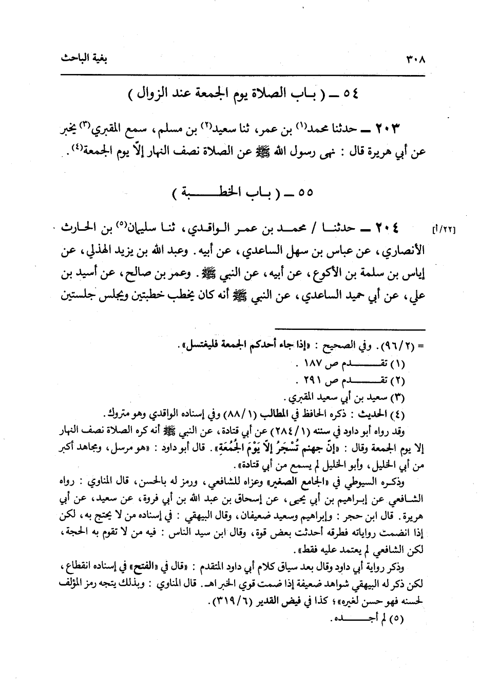 203 - حَدَّثَنَا مُحَمَّدُ بْنُ عُمَرَ، ثنا سَعِيدُ بْنُ مُسْلِمٍ، سَمِعَ الْمَقْبُرِيَّ، يُخْبِرُ عَنْ أَبِي هُرَيْرَةَ قَالَ: «§نَهَى رَسُولُ اللَّهِ صَلَّى اللهُ عَلَيْهِ وَسَلَّمَ عَنِ الصَّلَاةِ نِصْفَ النَّهَارِ إِلَّا يَوْمَ الْجُمُعَةِ»